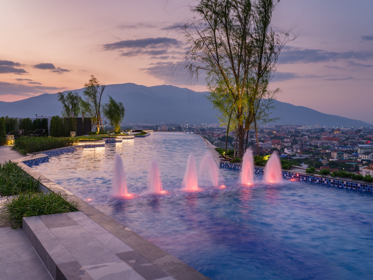 ASTRA SKY RIVER : Le dernier monument emblématique et le plus haut bâtiment de Chiang Mai ! Cette résidence luxueuse est située sur la rue Chang Klan, à 2 minutes à pied des restaurants et des supermarchés. Profitez des avantages de cet immeuble avec un accès gratuit à la piscine à débordement sur le toit et au centre de remise en forme. La piscine s'étend sur une longueur de 150 mètres, ce qui en fait la plus longue piscine sur le toit de Thaïlande.