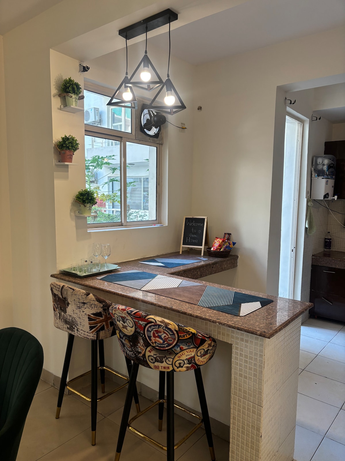 Step into calm at The Green Door — a peaceful 2BHK fully AC retreat with soothing green interiors, two clean modern bathrooms, and a cozy living space designed for comfort. Enjoy a fully equipped kitchen, relaxing bedrooms, and thoughtful decor that makes your stay warm and homelike. Perfect for couples, families, or work-from-home travelers seeking quiet, style, and simplicity.