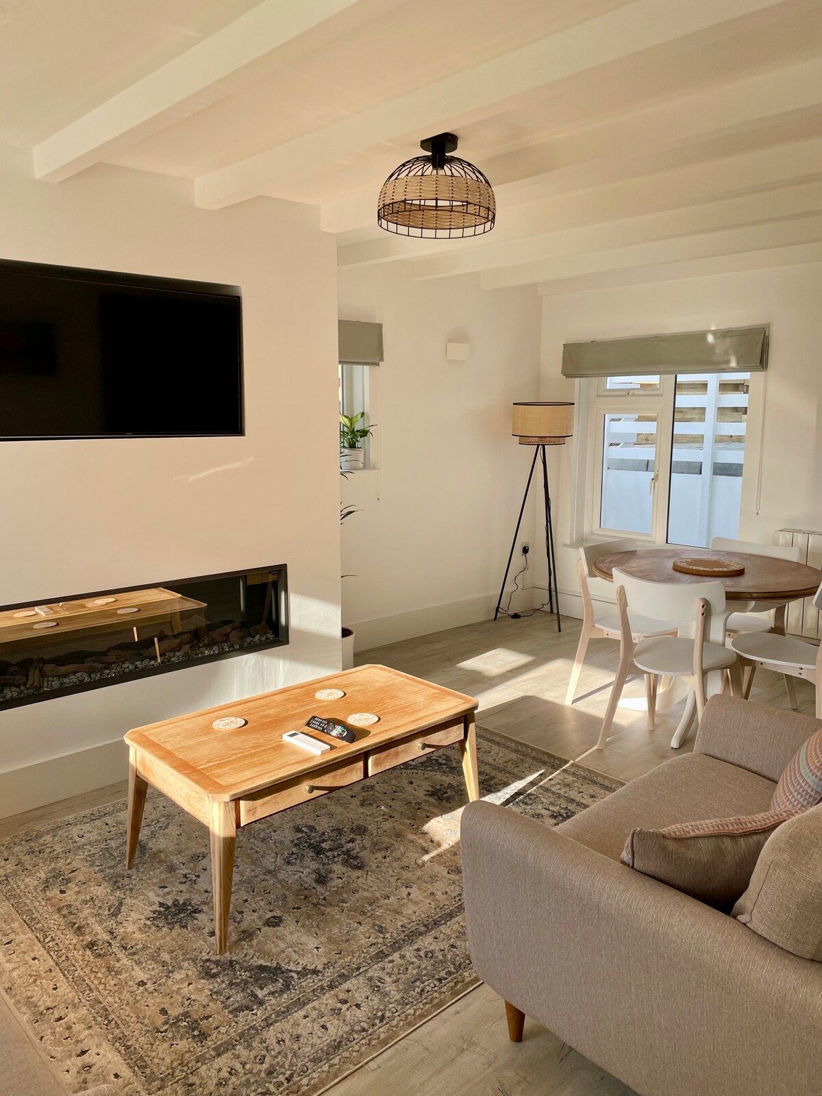Duplex d'une chambre avec balcon et vue sur la mer à seulement quelques minutes à pied de la plage de Porthtown, récompensée par le drapeau bleu, et de belles promenades sur les falaises. La maisonnette est située dans un endroit paisible vous permettant de profiter du soleil se couchant sur la mer depuis le balcon avec la chaleur d'un feu bioéthique. Avec parking dédié. La maisonnette vient d'être rénovée avec une nouvelle cuisine, une nouvelle salle de bain et de nouveaux meubles. Porthtowan dispose de boutiques, bars, cafés, parc, location de surf et la légendaire crème glacée Moomaid de Zennor.