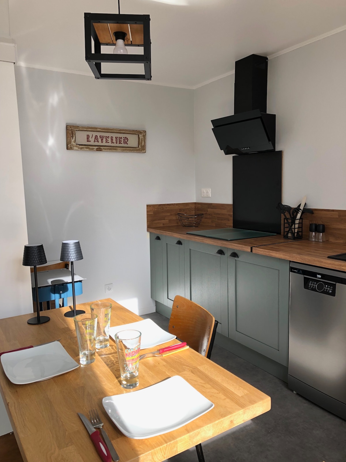 *Hakuna Matata, signifie que vous vivrez votre séjour sans aucun soucis ! Philosophie paisible et luxueux, Salon moderne, cuisine neuve, spacieuse et toute équipée(Micro-onde, four, lave vaisselle, plaque induction, hotte, machine à café, Grille pain, Bouilloire), suite a l'étage avec lit Queen Size et salle de douche avec toilette. Éclairages modifiable(chambre,salon,cuisine) Petit déjeuner offert le 1er jour par personne : 2 pancakes+ Petit pot de Nutella ou confiture+ dosette de café ou thé.