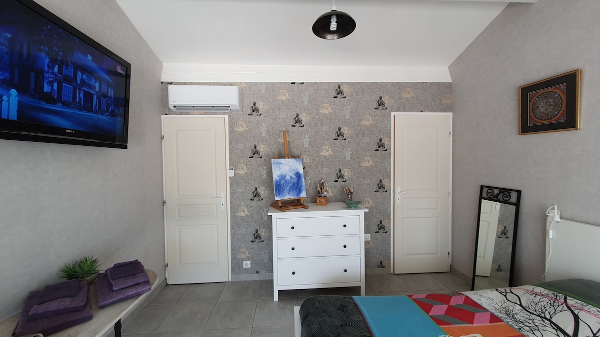 grande chambre d'hôtes indépendante avec sa SDB.