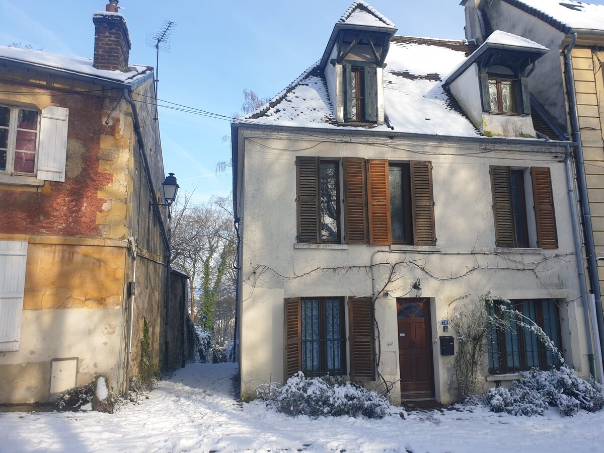 Petite maison lumineuse et chaleureuse au centre du village, fenêtres ouvrant sur deux jardins arborés. Village entouré de forêt et de champs au cœur du Parc naturel régional Oise - Pays de France (40 mn de Paris en RER). Commune située entre Senlis, ville royale et Chantilly, ville princière et capitale du cheval. Idéal si vous aimez entendre le chant des oiseaux au réveil et les balades en forêt, peut-être apercevrez vous au détour d'un chemin l'un de ses habitants.