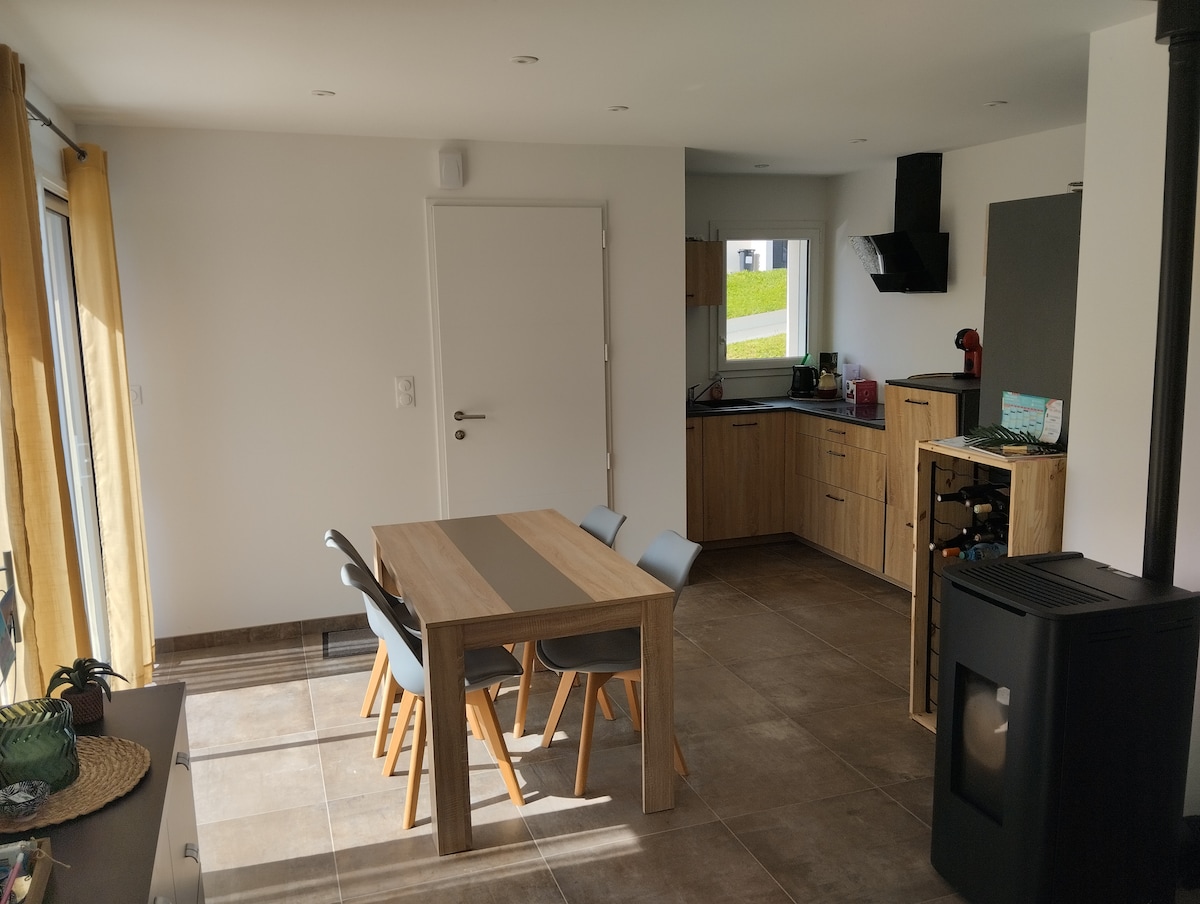 Respect du protocole de nettoyage renforcé établi par Air BnB Gîte de 130 m2 aménagé dans une ancienne grange réparti sur 2 niveaux. RdC : pièce de vie avec coin cuisine et coin salon. WC séparé. 1 chambre avec salle d 'eau privative (+ machine à laver). Etage : 1 chambre avec salle d'eau privative + couchage pour 2 enfants. WC séparé. Extérieur : cour anglaise de 93 m2 avec salon de jardin + barbecue + parasol + bains de soleil. Espace vert non cloturé accessible côté gîte et côté maison.