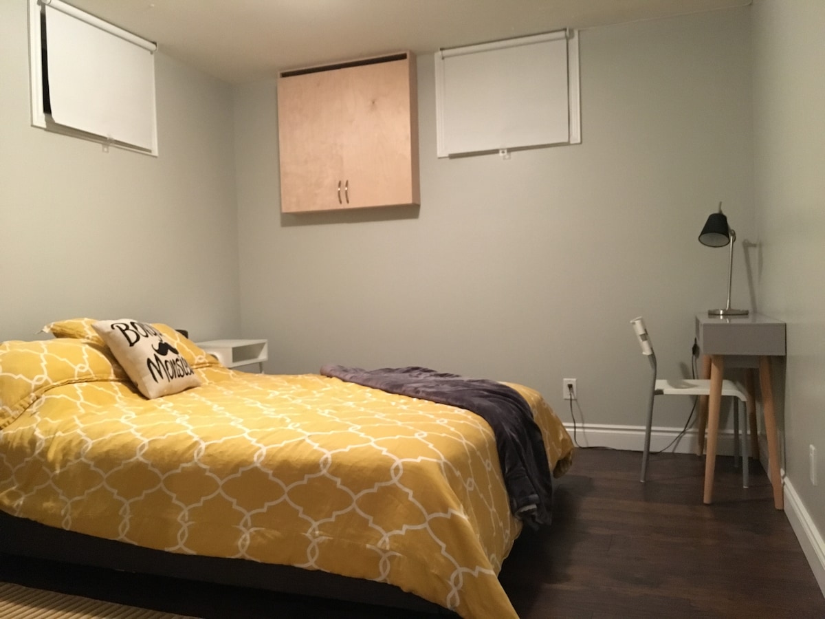 Évadez-vous dans cette suite lumineuse et confortable dans le sous-sol du Vieux-Chelsea ! Profitez d'un matelas confortable en mémoire de forme Casper, d'une cuisine entièrement équipée, d'une connexion Wi-Fi ultra-rapide, d'un poste de travail et d'un stationnement gratuit. À proximité, vous trouverez des cafés, des restaurants, le Nordik Spa et le parc de la Gatineau pour les activités de plein air. Ottawa est à seulement 10 minutes pour la culture et le divertissement. Avec la climatisation, la buanderie et l'entrée sans clé, vous aurez tout ce dont vous avez besoin pour un séjour sans stress. Entrée partagée et les hôtes occupent les étages supérieurs.