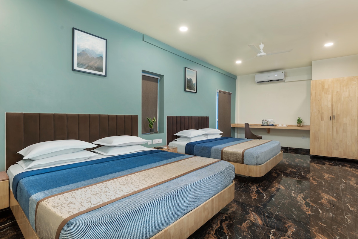 Un séjour confortable au cœur de Chennai à Nungambakkam. Cette chambre de 200 pieds carrés comprend un lit double confortable, une salle de bain privée, un bureau et une kitchenette compacte. Situé près de l'hôpital Apollo, de l'ambassade américaine, de Khadar Nawaz Khan Road et de T. Nagar, il est parfait pour les voyageurs d'affaires, les visiteurs médicaux et les acheteurs. Profitez du confort, de la commodité et d'un accès facile aux principaux monuments de Chennai.
