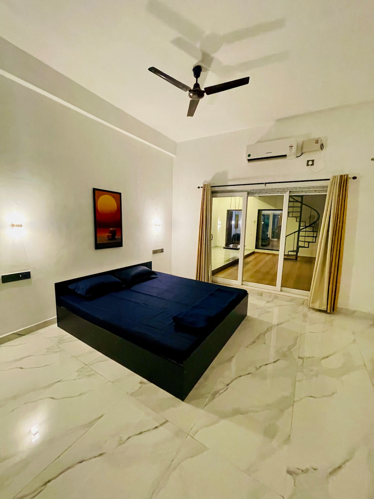 Bienvenue dans notre appartement de 2 chambres sur le thème de Barcelone avec vue sur le lac à Chennai ! Parfait pour les familles, les couples ou les voyageurs d'affaires. Profitez d'une vue imprenable sur le lac depuis le salon et les chambres. Entièrement meublé avec des meubles rustiques en bois et toutes les commodités, y compris un coin salon confortable, une cuisine équipée, un four, un lave-linge et deux chambres climatisées avec des accents de bois. Normes de propreté élevées avec des draps, des articles de toilette et des serviettes propres. Emplacement privilégié à proximité de nombreux centres commerciaux, entreprises et plages !