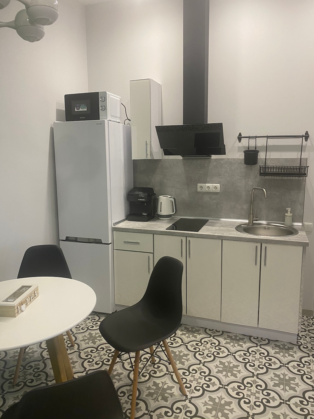 Ouvrez la porte à un monde de confort et de confort dans notre appartement design situé sur la rue piétonne Olga Kobylianska, au cœur de Tchernivtsi. Nous nous sommes assurés que votre séjour est aussi confortable que possible. L'appartement est équipé de tout ce dont vous avez besoin pour passer un agréable séjour : cuisine entièrement équipée avec cuisinière, bouilloire, réfrigérateur, micro-ondes et ustensiles nécessaires ; Il y a également un lave-linge, un sèche-cheveux et un fer à repasser, une connexion Wi-Fi, une télévision.