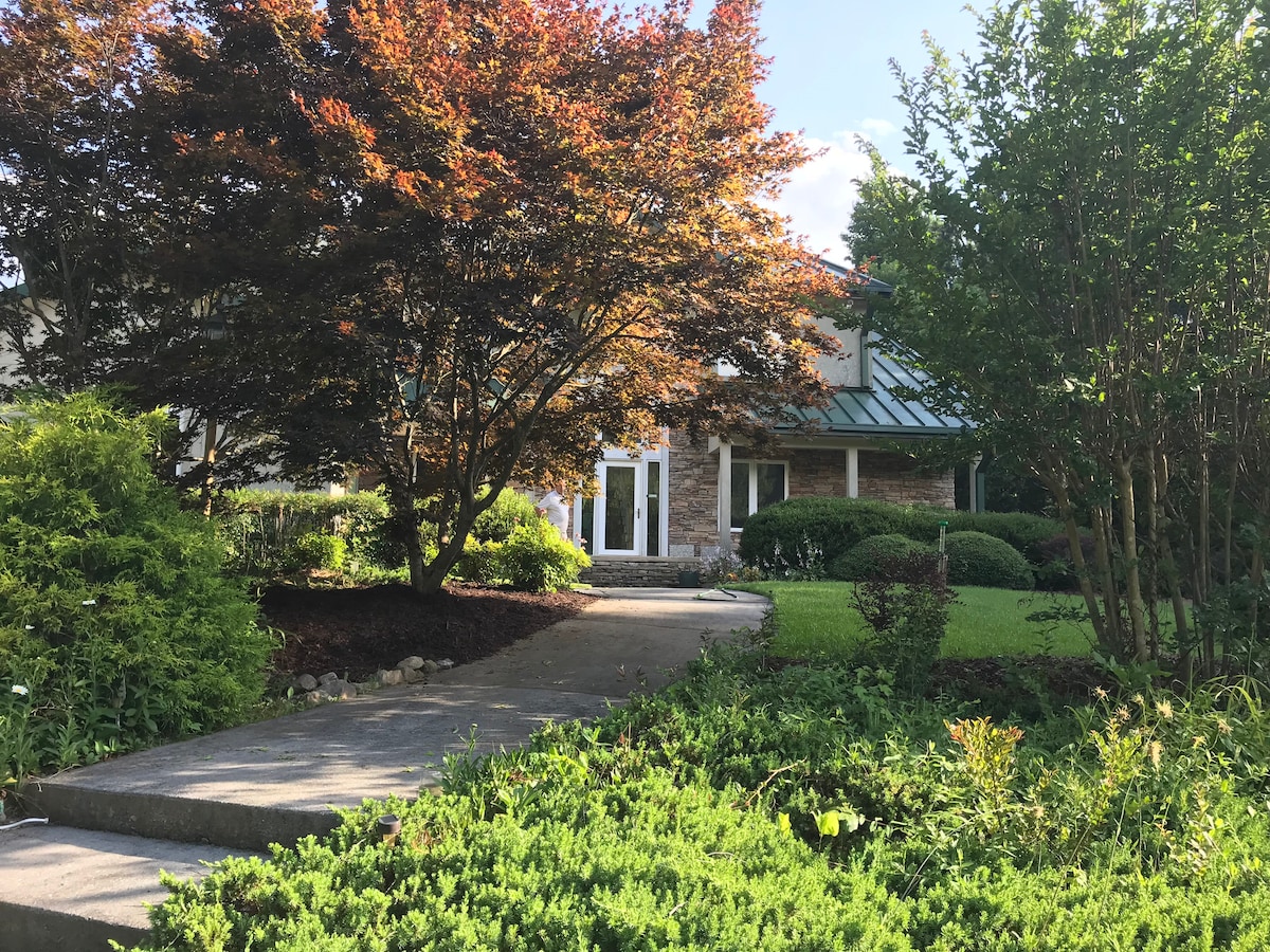 Amenez vos chiots et visitez Woodland Run surplombant les contreforts des montagnes Blue Ridge ! Chambres avec lit «❈ king size »/« queen size » ❈ Chiens acceptés avec cages et cour clôturée ❈ Le canapé-lit queen size dans le théâtre devient la 3e chambre Salle de bain❈ complète avec baignoire ❈ Kitchenette avec réfrigérateur de grande taille + micro-ondes + four de table + Keurig pro + lave-vaisselle + plaque chauffante électrique ❈ Petit déjeuner continental gratuit Table de❈ billard ❈ Cinéma avec fauteuils inclinables moelleux Service de blanchisserie❈ gratuit Garde d'❈animaux disponible ❈ PAS DE TÂCHES DE DÉPART !