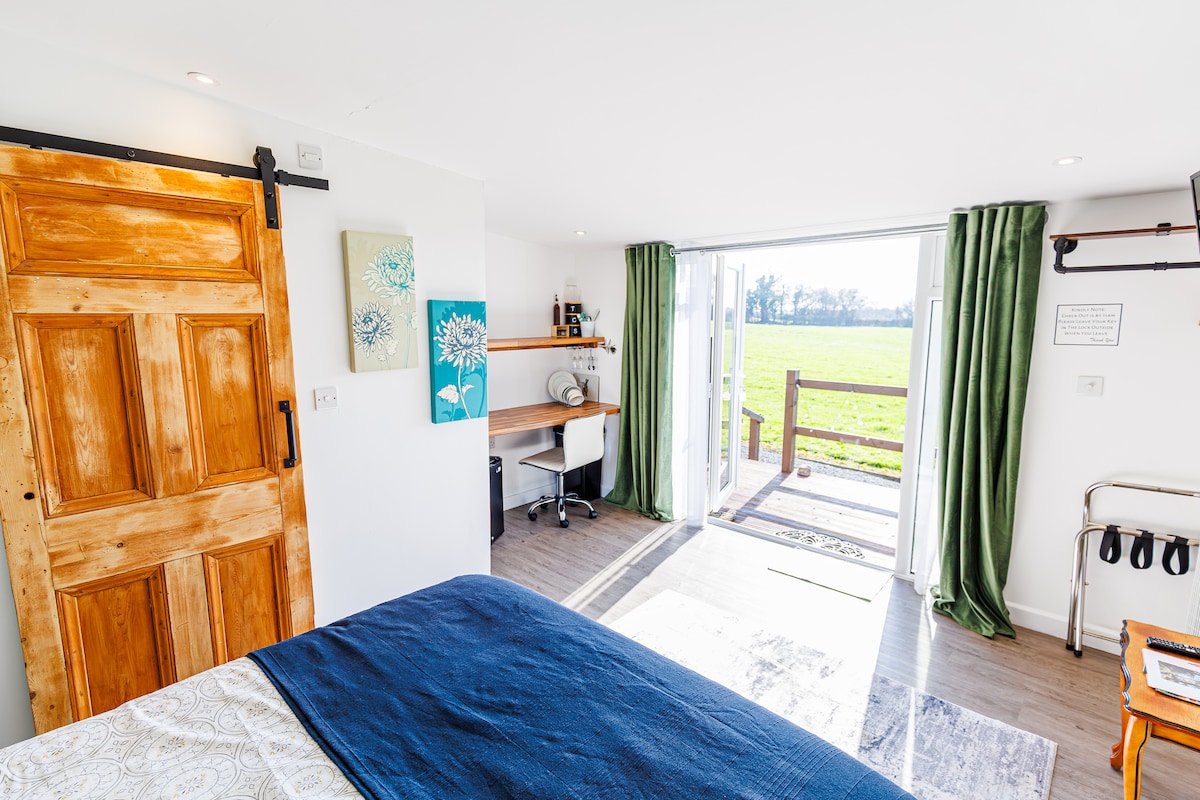 Entrez dans un monde de paix et d'intimité dans une cabane isolée. Le cadre idéal pour la romance, la détente et une touche de luxe. Prenez un bain sous les étoiles dans le jacuzzi privé, blottissez-vous près du poêle à bois, respirez l'air de la campagne et écoutez le chant des oiseaux. Avec un lit double confortable, une salle de bains équipée, une kitchenette, un barbecue à gaz. Entouré de sentiers pédestres pittoresques, de pubs charmants et de sites patrimoniaux à proximité, c'est la retraite romantique parfaite pour se détendre, se reconnecter et créer des souvenirs inoubliables.