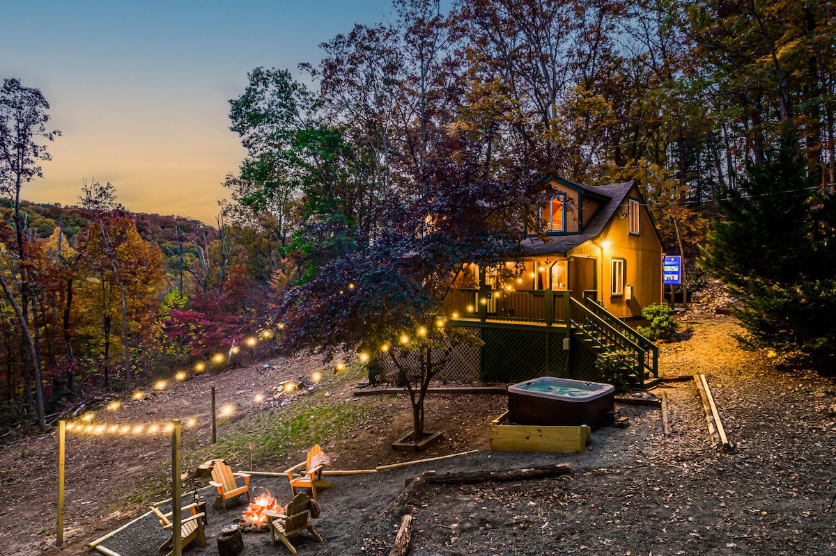 Imaginez vous réveiller au son d'un ruisseau qui s'écoule doucement pendant que la lumière du soleil filtre à travers les arbres. Votre escapade en montagne vous attend ! Cette charmante cabane acceptant les animaux de compagnie offre le mélange parfait de confort et d'aventure. Détendez-vous dans le jacuzzi, faites griller des guimauves près de l'un des nombreux foyers ou partez en randonnée sur nos sentiers privés. Profitez d'équipements modernes, y compris une salle de cinéma et des jeux d'arcade, avec une touche de charme rustique. C'est votre base pour explorer la beauté de la Virginie-Occidentale.
