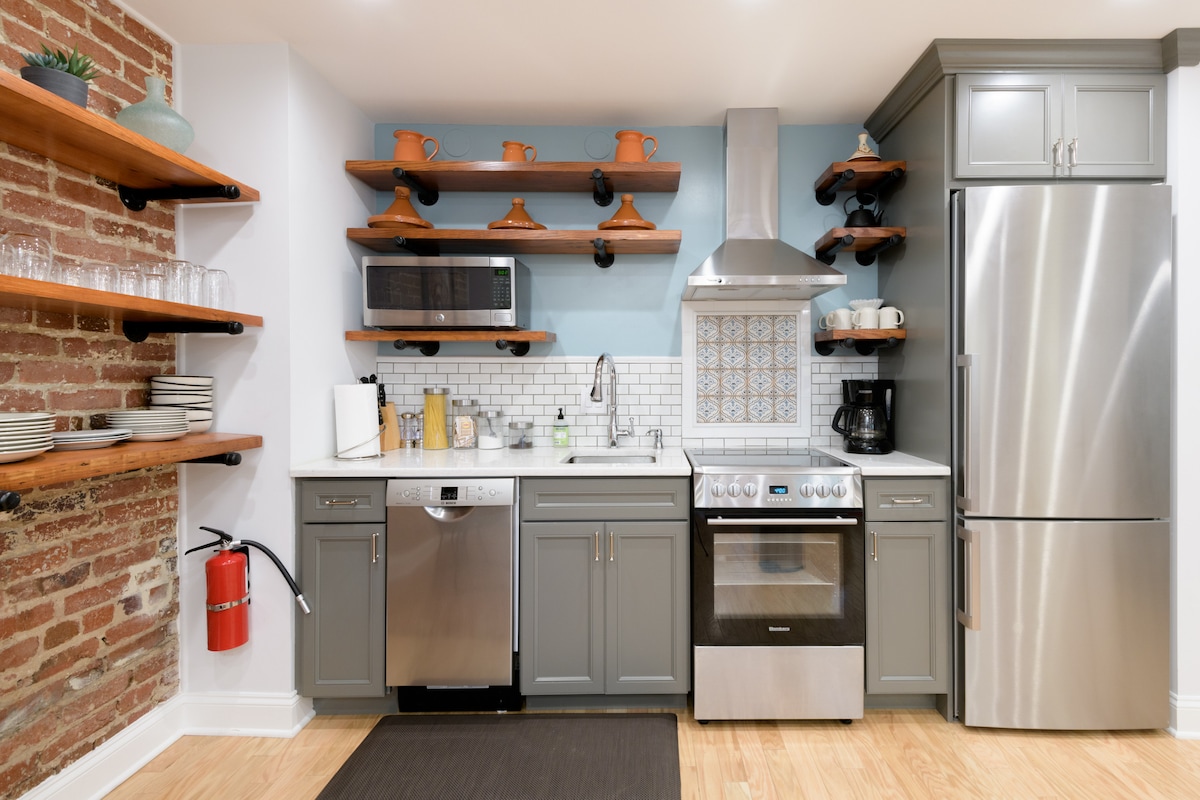 PRO CLEANED - Bienvenue dans cet élégant appartement Airbnb Plus ! Situé dans le quartier historique de Mount Pleasant, ce charmant appartement de 2 chambres est votre maison idéale loin de chez vous. Idéalement situé, cet endroit offre un accès facile à toutes les principales attractions de DC et se trouve à quelques pas du National Zoo, de Rock Creek Park, d'Adam's Morgan et de nombreux restaurants et transports à proximité, notamment le métro, les bus et les vélos en libre-service. Ce logement au rez-de-chaussée d'une maison mitoyenne historique de 1910 a été récemment rénové. Il est parfait pour les touristes et les voyageurs d'affaires et offre une atmosphère élégante et pittoresque avec des équipements modernes. L'espace de vie de l'appartement est chaleureux et confortable, avec un magnifique mur de briques apparentes, un éclairage frais et des coins de lecture confortables. Vous y trouverez de nombreux espaces de rangement dans les placards de la chambre. Nous fournissons le linge de lit, les oreillers et les couvertures. La cuisine gastronomique entièrement équipée vous offre tout ce dont vous avez besoin pour cuisiner à la maison. Le lave-linge et le sèche-linge en suite vous éviteront un voyage à la laverie, alors voyagez léger ! La salle de bain est équipée de shampoing, d'après-shampoing et de gel douche. Nous avons créé cet appartement pour qu'il soit votre maison parfaite loin de chez vous. Caractéristiques de notre appartement sécurisé au niveau inférieur : * 2 chambres avec 1 lit Queen Size et 1 lit double * Mobilier neuf * Espace de vie confortable avec une table à manger et des chaises * Salle de bain complète avec douche * Cuisine entièrement équipée avec lave-vaisselle, four, micro-ondes et réfrigérateur * Lave-linge et sèche-linge dans l'appartement avec détergent fourni * Internet haut débit gratuit * Télévision connectée * Parquet en bois dur ; * Climatisation et chauffage contrôlés par les voyageurs Emplacement : * Métro accessible – à moins de 10 minutes à pied du métro Columbia Heights ; * Un court trajet le long de la 16e rue vous amène directement à la Maison Blanche ! * Plusieurs lignes de bus sont idéalement situées à quelques pas seulement. * Fabuleux marché fermier à 2 pâtés de maisons (samedi, avril à décembre) ; * Épiceries et restaurants à 1 pâté de maisons. * À quelques pas de Columbia Heights, Adams Morgan, Cleveland Park et bien plus encore. L'appartement dispose de suffisamment de place pour une personne, un couple, deux couples ou une famille de 4 personnes. Nous vivons immédiatement au niveau supérieur de cette maison de ville historique de Mount Pleasant, donc nous ne sommes qu'à un coup de fil, un SMS ou une sonnette si vous avez des questions ou besoin d'aide pour quoi que ce soit. Cet appartement privé dispose de deux entrées séparées (avant et arrière). Nous respectons la vie privée de nos voyageurs, mais nous aimons également interagir avec eux pour leur fournir toute l'aide, les suggestions ou les conseils nécessaires pendant leur séjour. L'appartement est situé dans le quartier charmant et central de Mount Pleasant, un quartier verdoyant avec une atmosphère de petite ville, une architecture historique et des offres culinaires dynamiques. L'appartement bénéficie d'un bon accès aux transports en commun : les principaux arrêts de bus sont à 1 ou 2 pâtés de maisons et la station de métro Columbia Heights est à moins de 10 minutes à pied (Cleveland Park Metro est à un court trajet en bus). Le stationnement dans la rue est disponible selon le principe du « premier arrivé, premier servi », mais des permis de stationnement résidentiel sont requis pendant la semaine (pas les week-ends) si vous prévoyez de stationner plus de 2 heures à la fois. Nous pouvons vous fournir un laissez-passer de stationnement si vous en avez besoin. * Un lit pliant et un rehausseur sont disponibles sur demande. * Le permis de stationnement est disponible sur demande (des frais de 200 $ sont facturés s'il n'est pas retourné).