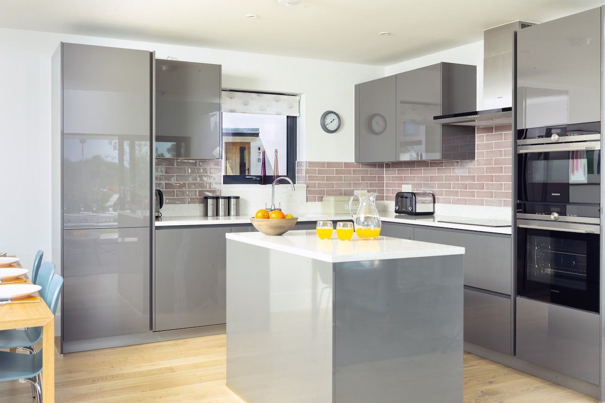 Une grange spacieuse et luxueuse située dans 260 acres de terres agricoles biologiques où vous pourrez vous promener sur les nombreux sentiers pédestres, goûter au gastro-pub local ou admirer la vue depuis notre site de château médiéval, le tout à seulement 30 minutes de la magnifique côte jurassique. Les voyageurs peuvent réserver des séances quotidiennes gratuites d'une heure dans le jacuzzi à flanc de colline et le sauna Woodland à leur arrivée et s'immerger vraiment dans l'environnement tranquille.