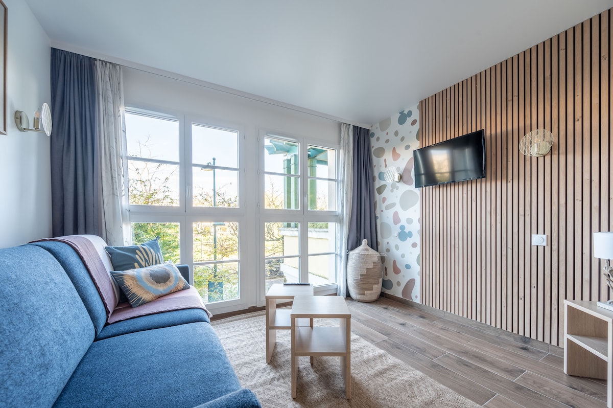 Enjoy a stylish stay in a 3-star apartment hotel with modern amenities and excellent transport links. Located in Nogent-sur-Marne, a charming town known for its riverbanks, historic guinguettes, and parks, this accommodation is just a short walk from the RER E Nogent-Le Perreux station, providing direct access to central Paris. Ideal for travellers seeking both city convenience and a relaxing riverside escape.