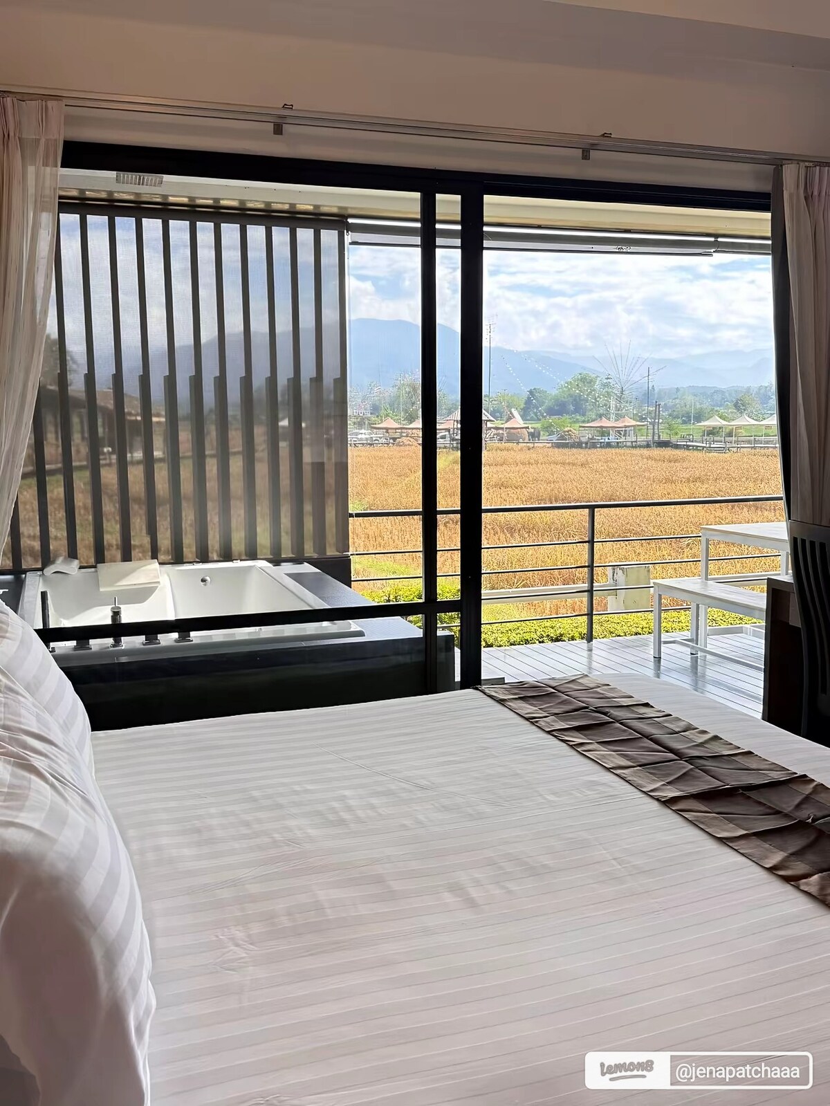 มีมุมห้องนอน, มุนนั่งเล่น, มุมทานข้าว, มุมนั่งทำงานชมวิวสุดหูสุดตา พื้นที่ใช้สอยมากกว่า 66 ตางรางเมตร ห้องน้ำกว้างมาก พักผ่อนครอบครัว 2-3 ท่าน อยู่ในหมู่บ้าน แต่ได้วิวสุดธรรมชาติ ติดถนนหลัก จอดรถหน้าที่พักได้เลย มีบริการแม่บ้าน แม่ครัว วิวสวยกระจกพาโนราม่า ยาวกว่า 11 เมตร สูง 2.70 เมตร เตียงนุ่น โซฟานุ่ม แอร์, ทีวี , ตู้เย็น ,เครื่องทำน้ำร้อน , ผ้าเช็ดตัว สบู่ แชมพู, ไดร์เป่าผม จองราคาที่พักรวมพร้อมอาหารเช้า แม่บ้าน แม่ครัวดูแลตลอด