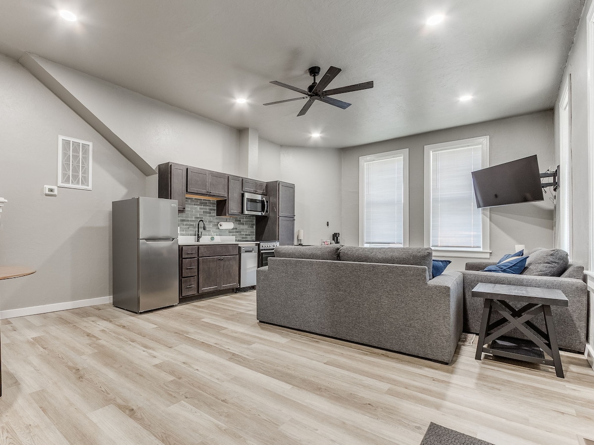 Magnifique maison de ville unique située dans le magnifique quartier de Wheeler à Oklahoma City. Ce logement se trouve à quelques pas des restaurants locaux et d'une brasserie 5 étoiles, ainsi qu'à distance de marche de l'emblématique grande roue OKC, du parc et de la piste cyclable et pédestre de la rivière Oklahoma. The Hive est une résidence de deux étages située au-dessus d'une boutique de design et de vin avec deux chambres, deux salles de bains complètes et une salle d'eau. Le logement dispose d'une place de stationnement dédiée et d'une entrée sans clé. *Il est interdit de fumer partout dans les locaux*