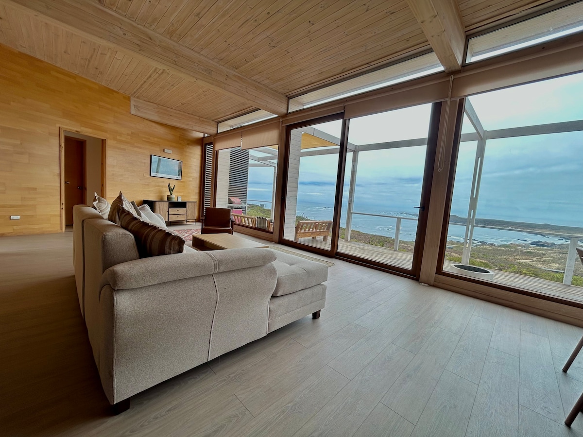 Détendez-vous avec vos amis ou votre famille dans ce chalet confortable à l'aspect rustique sophistiqué, avec une nature abondante et une vue sur la baie de Pichidangui. Deux chambres, toutes deux avec lit 2 places, dont une avec salle de bains privative. Îlot-salle à manger, cuisine ouverte, avec réfrigérateur, micro-ondes, cuisinière à gaz avec four inclus et ustensiles, en général pour 6 personnes. Le salon avec fauteuil 3 places et 2 sièges et Internet avec antenne Starlink et TV HD4k de 50”. Poêle à granulés Bosca.