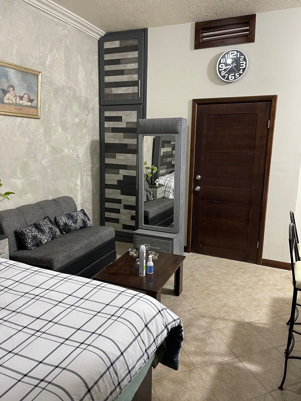 Appartement totalement indépendant au rez-de-chaussée avec mini-split pour les séjours en famille ou de travail. Cuisine équipée.-Cuiseur, réfrigérateur, cuisinière, salle à manger, micro-ondes, cafetière. Chambre à coucher.- Lit double, mini Split, TV 50 pouces. 1 salle de bain complète. Salon.- Un canapé-lit ventilateurs. Patio.- Petit patio avec lave-linge et étendoir. Il dispose d'un mini-split (froid et chaud)