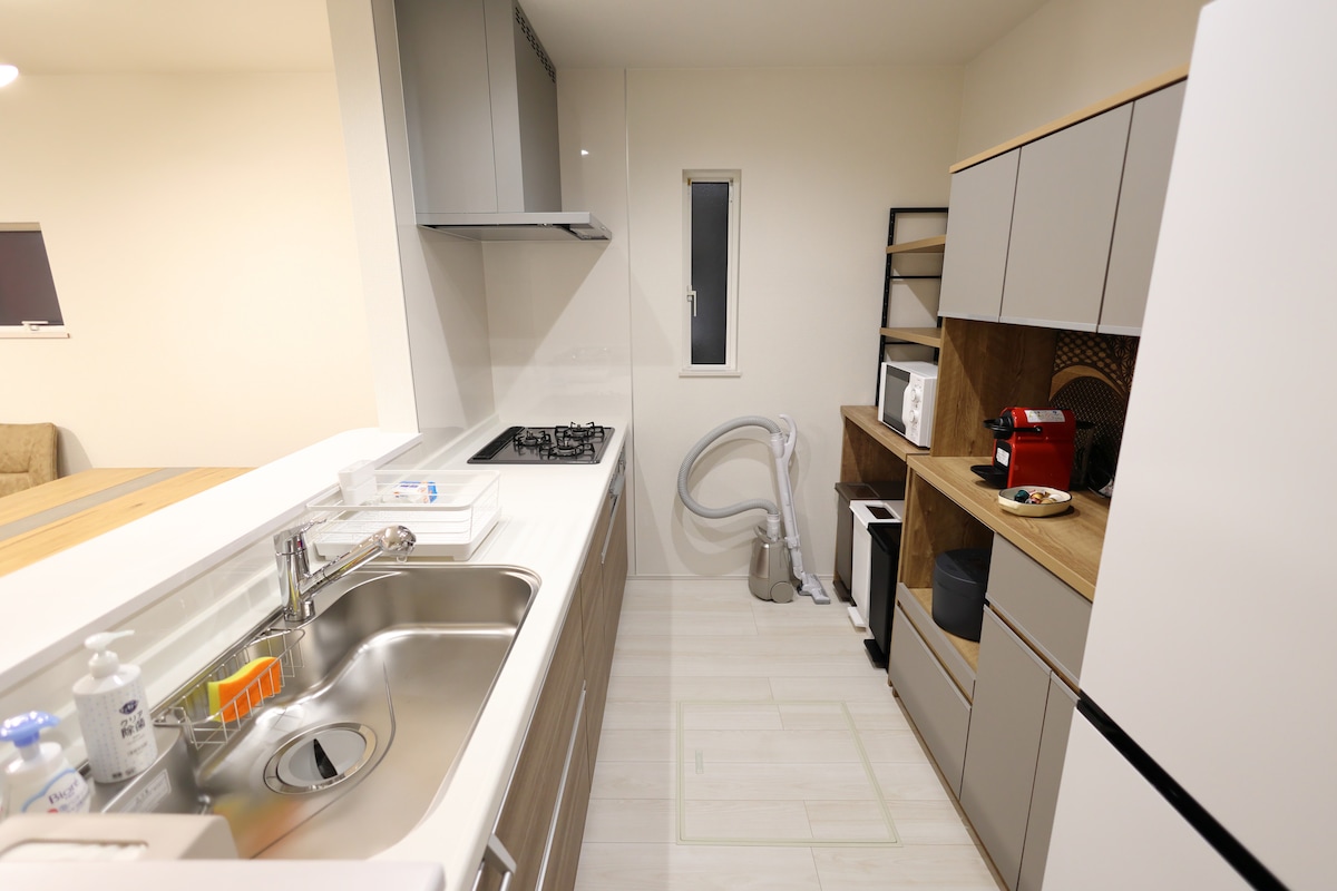 Le Mei-no-Yuugokoro est situé à 4 minutes à pied de la gare de Dazaifu. Il y a des supérettes, des supermarchés et des restaurants à proximité, ce qui vous garantit un séjour confortable. Maison individuelle neuve de style japonais moderne, pouvant accueillir jusqu'à 11 personnes. Il y a deux places de stationnement gratuites, ce qui en fait également une base pour vos voyages dans le Kyushu. La chambre principale est équipée d'un projecteur à écran électrique et d'un contrat U-NEXT, vous pouvez donc profiter de vos films et séries préférés sur grand écran. De plus, des chaises et une table sont installées dans la partie balcon, ce qui vous permet de profiter d'un repas ou d'un verre dans une atmosphère élégante. Le grand salon-salle à manger est équipé d'une table en bois massif pouvant accueillir jusqu'à 8 personnes. Le canapé est un canapé d'angle de haute qualité de spécification hôtelière, qui offre un ajustement confortable. En termes d'équipement, nous sommes équipés d'un lave-linge séchant, de sorte que même les personnes séjournant plusieurs nuits ou de longue durée n'auront pas de problème pour faire leur lessive. Pour rendre votre séjour confortable, nous mettons à votre disposition une machine à café Nespresso et vous offrons une tasse pour apaiser la fatigue du voyage. Un plan des restaurants à proximité est disponible dans le guide, veuillez l'utiliser pour trouver un endroit où manger.