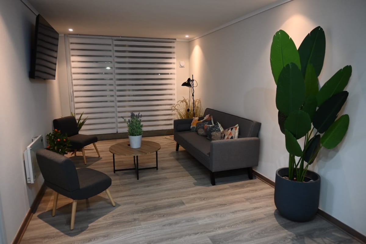 Disfruta de la sencillez de este alojamiento tranquilo y en pleno centro de Chillán. Ubicado a una cuadra de la plaza de armas y mall, rodeado de supermercados, restaurantes, bancos, mercado, etc. muy confortable y equipado. Cuenta con gimnasio, lavandería y sala de cowork.