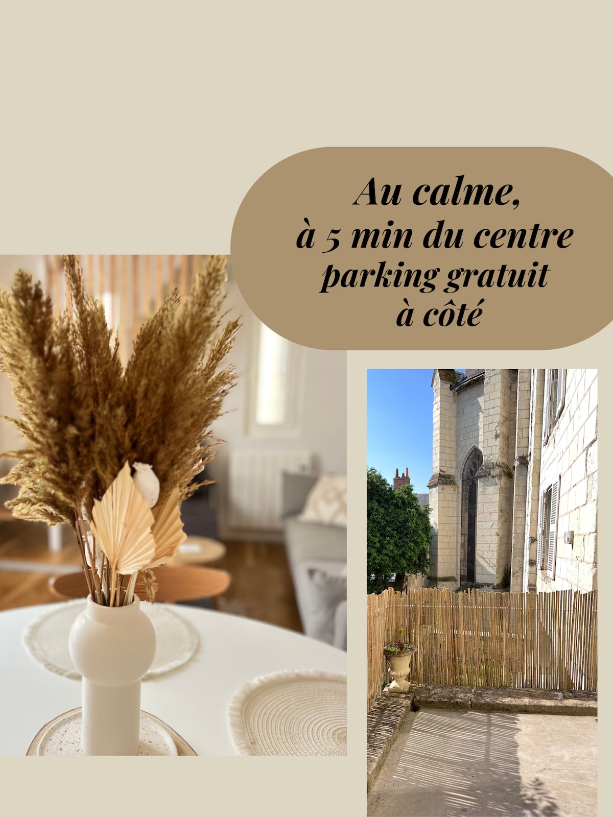 Détendez-vous dans ce logement calme et élégant. Situé à 5 minutes à pied du centre ville et offrant à quelques mètres, une vue magnifique sur la forteresse de Chinon. Ce logement est composé au Rez de chaussée d’un salon avec Tv connectée et canapé convertible. La cuisine est tout équipée ( frigo, four, plaque, four micro-ondes, machine à café…) wifi. A l’étage, une chambre avec lit confortable et espace bureau, une grande salle d’eau avec douche et machine à laver. Lit parapluie sur demande.