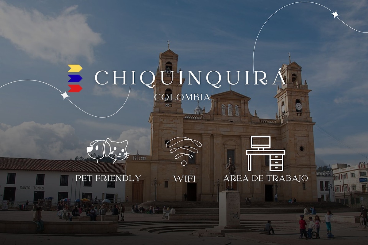 Profitez d'un appartement confortable, calme et parfaitement situé pour un séjour exceptionnel. Vous séjournerez à quelques pas de la basilique et du centre, ce qui vous permettra de parcourir la région facilement et de profiter de son atmosphère chaleureuse. De plus, vous ne serez qu'à environ 35 minutes de Villa de Leyva et de Ráquira, deux destinations incontournables pleines de culture, d'artisanat et de paysages uniques. Cet espace est parfait pour se reposer après une journée de visites, tout confort.