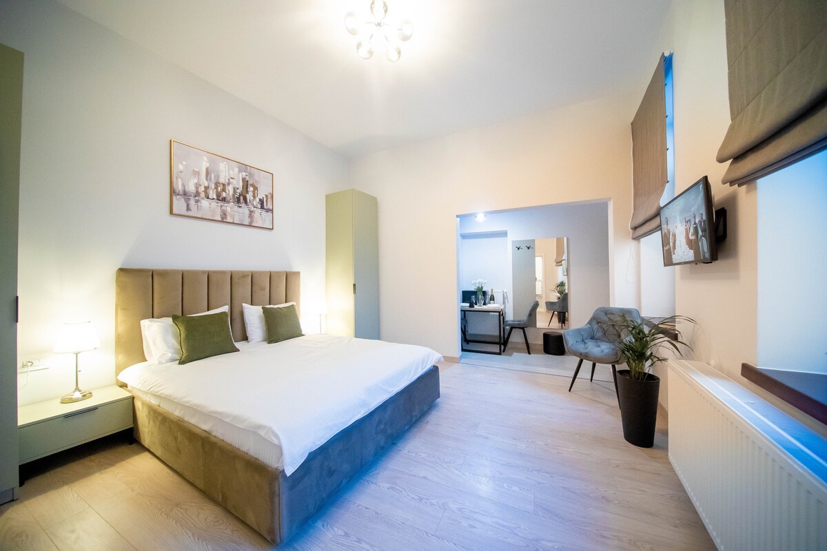 Offrez-vous une expérience exclusive dans un appartement élégant, situé au centre de la ville, à distance de marche des attractions les plus importantes. Une baignoire luxueuse nichée directement dans la zone de couchage, parfaite pour des moments de détente et de romance absolue, dans un décor intime et sophistiqué. Équipements haut de gamme : Lit king size avec matelas confortable de qualité hôtelière Baignoire autoportante dans la chambre au design moderne Wi-Fi haut débit Coin salon intime et espace d'ambiance Salle de bain séparée, entièrement équipée Machine à café.