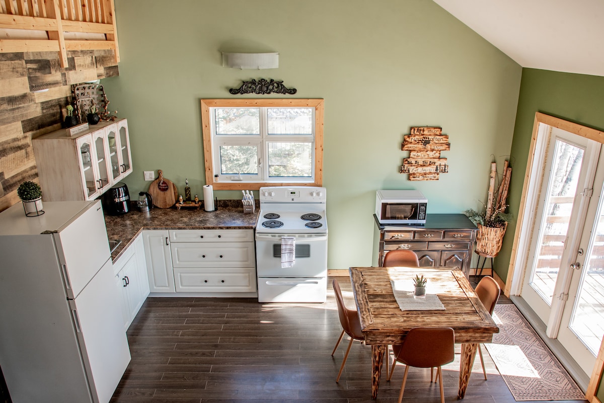 La cabane Backwoods est une nouvelle cabane de 2 chambres avec une salle de bain complète et une cuisine complète. Il dispose d'un lit queen size dans chaque chambre ainsi que d'un canapé convertible dans le salon. Profitez de votre café sur le porche grillagé donnant sur le lac Cowan. Celui-ci est à côté de la buanderie/des toilettes de la station pour un accès rapide à la buanderie à pièces ou aux toilettes supplémentaires. Pour les groupes plus importants, réservez The Train Station car ces deux sont reliés au porche grillagé !
