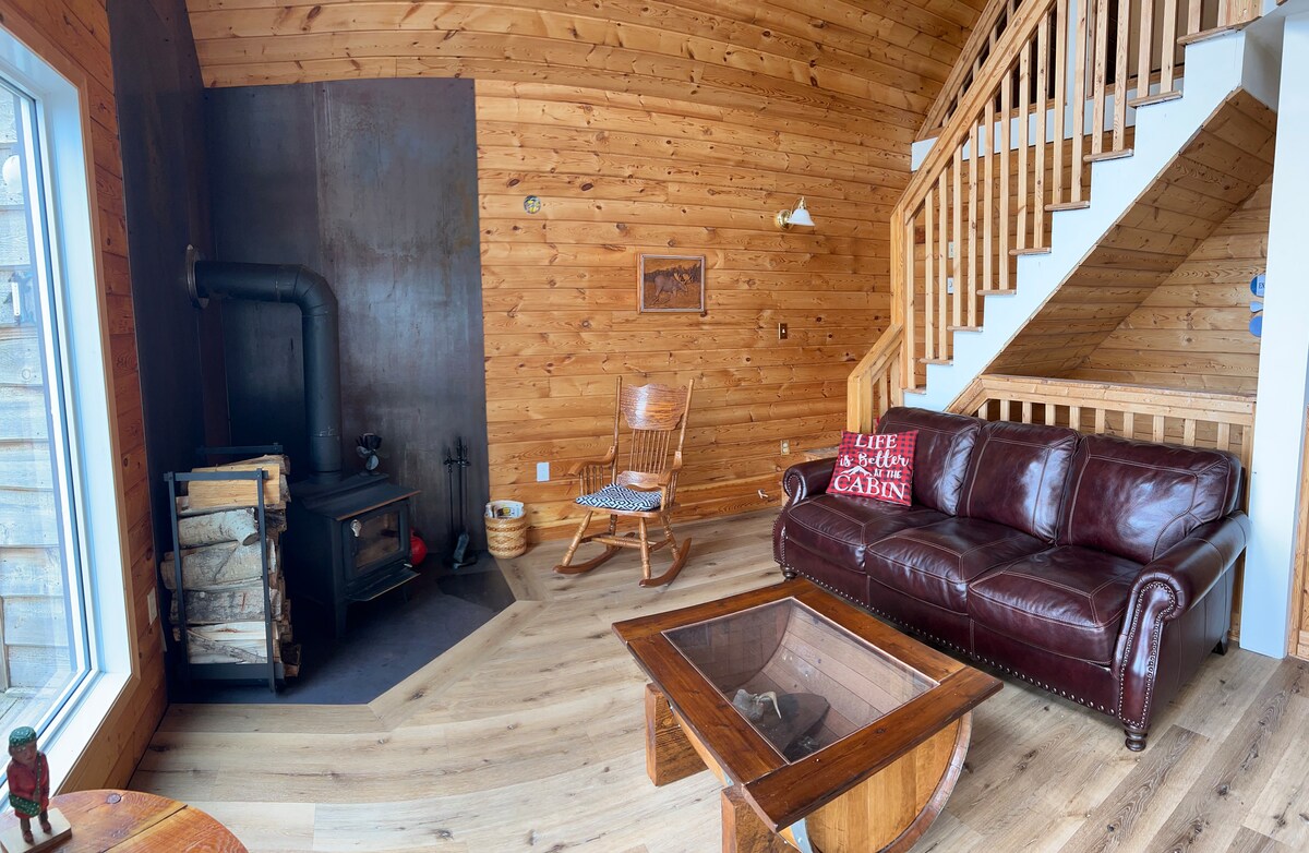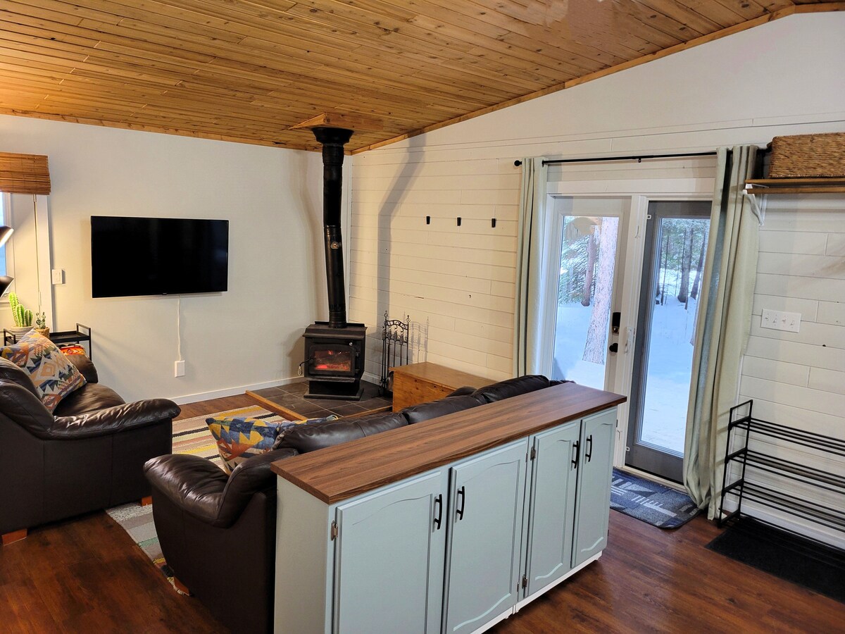 Évadez-vous dans ce chalet confortable niché dans les bois calmes, parfait pour une retraite tranquille. Détendez-vous avec un livre ou un film ou profitez du foyer extérieur (bois de chauffage inclus). Il y a également des sentiers sur la propriété pour le ski de fond, la raquette ou la randonnée pour que vous puissiez en profiter (en saison). Ce charmant refuge offre le mélange parfait de paix et d'aventure, ce qui le rend idéal pour les amants de la nature à la recherche de sérénité et de rajeunissement. (Il est proche du lac Hélène, mais ce n'est pas un chalet au bord du lac)