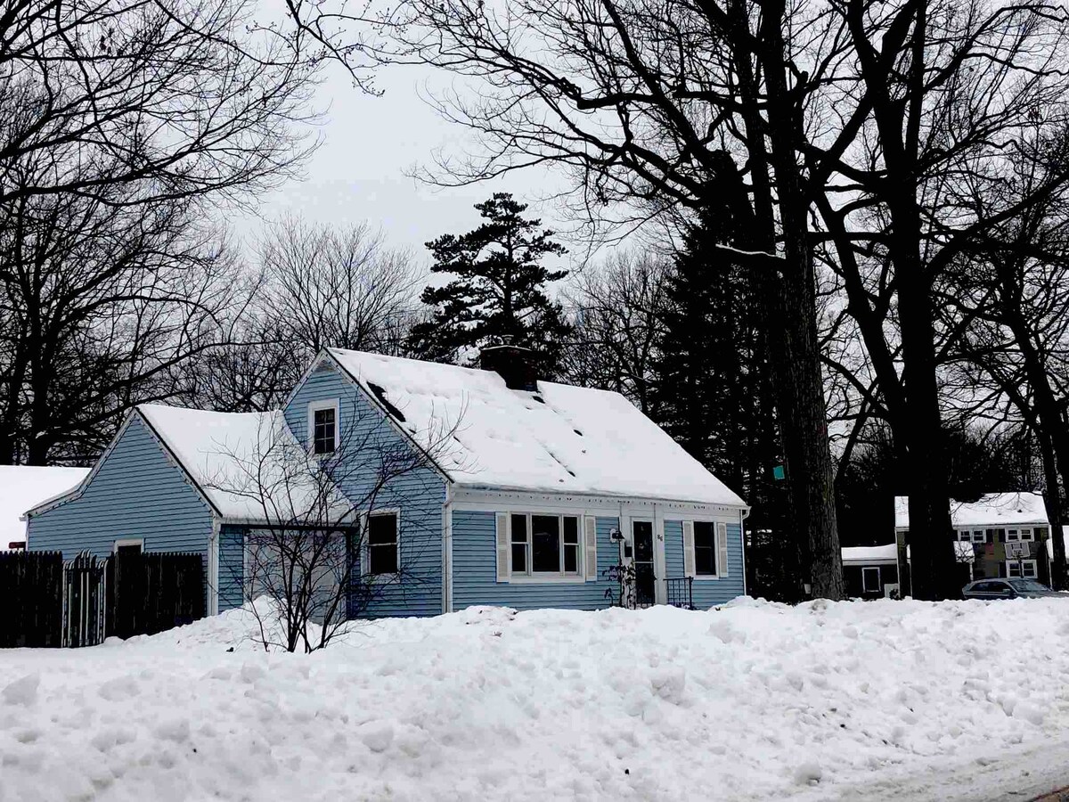Cette adorable maison de la cape est proche du centre-ville de Burlington, Vt, de la piste cyclable et des commerces. À seulement 10 minutes à pied d'une plage privée sur le lac Champlain ! Loft 3 BR +, 1 salle de bain complète au rez-de-chaussée, sous-sol fini avec buanderie et salle de divertissement. Clôturé dans l'arrière-cour avec un grand patio en bois, un jacuzzi, une pergola couverte, un barbecue au propane et un brasero, des lits de jardin, une balançoire et une table à manger extérieure. WIFI, téléviseurs à écran plat 50" et 40", câble, DVD, lecteur de disques. Adapté aux chiens avec des planchers en bois dans toute la maison.
