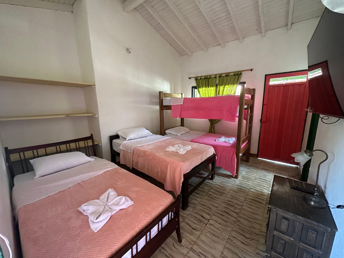 Travaillez depuis le Pacifique avec Internet qui fonctionne vraiment. Nous sommes l'un des rares hôtels à El Valle avec Starlink (WiFi stable pour les appels vidéo et le travail lourd) et la lumière 24/7 garantie. Chambre avec climatisation, 1 lit double + 3 lits simples, salle de bain privée. Après le travail : piscine, plage à 30 secondes, visites à PNN Utría, surf, cascades. Nourriture du Pacifique fraîchement pêchée. 15 ans d'expérience. Ici, vous ne choisissez pas entre produire et déconnecter : vous faites les deux. Le Pacifique est ton nouveau bureau.