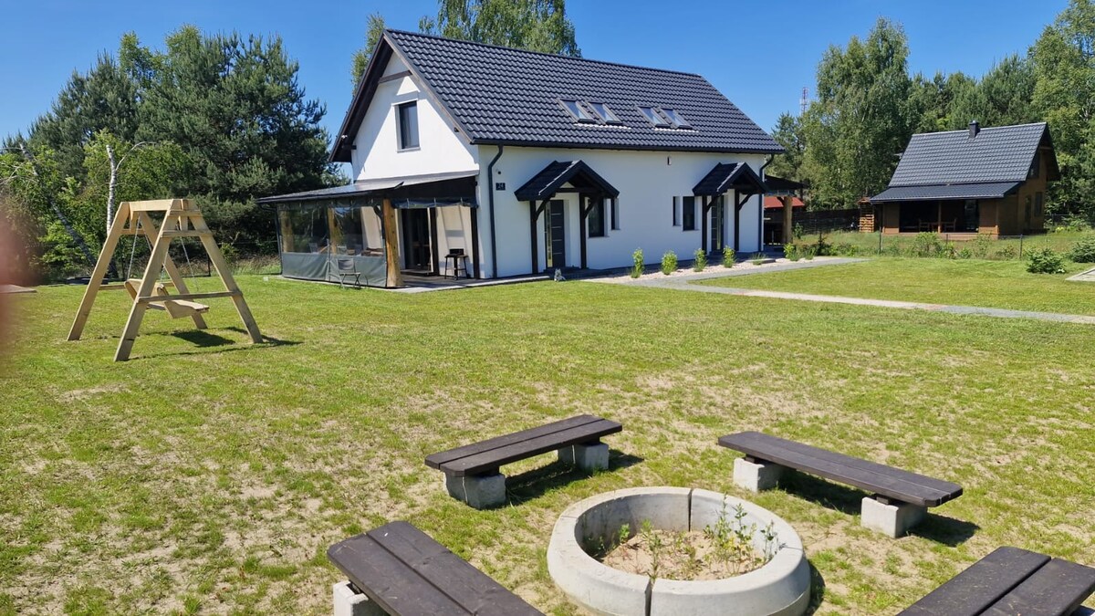 Une maison en bois composée d'un salon avec une cuisine ouverte, deux salles de bains, 4 chambres et est située dans un endroit calme à 100 m du lac, accès au lac par une route goudronnée à environ 300 m - environ 7 min. à pied. Un lac avec une petite jetée et une brise. Terrain clôturé, espace barbecue, maison pour enfants, foyer et bois, trampoline, balançoire. Vitesse Wi-Fi d'environ 20 Mb/s, en raison de la proximité du lac, mauvaise couverture. Mauvaise couverture du réseau mobile. Chaînes de télévision de base. Jusqu'à 4 personnes disponibles au rez-de-chaussée de la maison.
