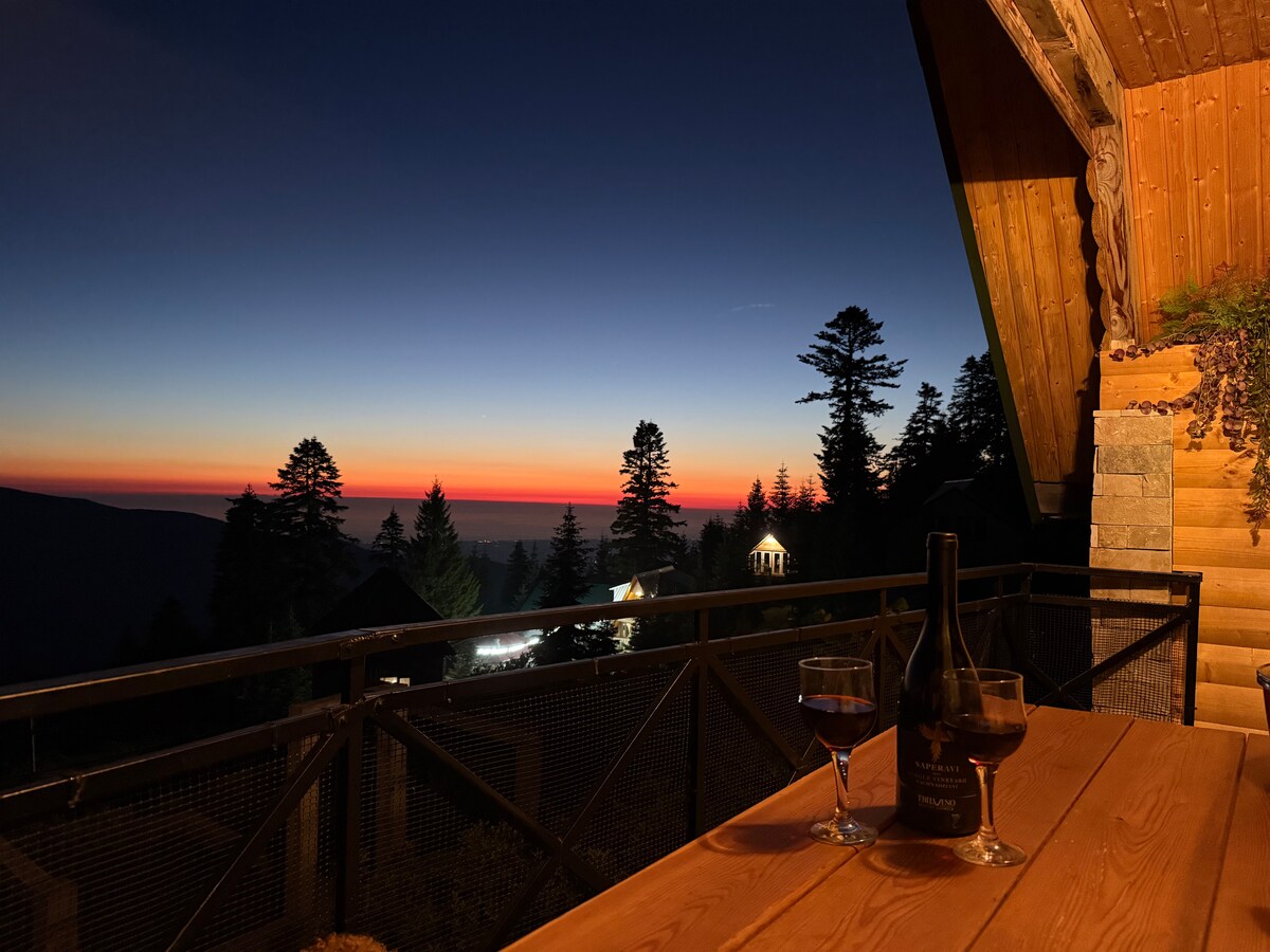 Évadez-vous dans ce charmant chalet niché dans la beauté tranquille de Bakhmaro. Avec une forêt de conifères derrière et une rivière douce en face, cette retraite paisible offre l'escapade ultime pour les amis et les familles (jusqu'à 8 personnes). Ce que vous allez adorer : - Réveillez-vous avec l'odeur fraîche des sapins, une vue imprenable sur la forêt et le son apaisant de la rivière qui coule à proximité. - Un point de départ idéal pour explorer les sentiers, forêts et montagnes uniques de Bakhmaro - Cadre et décor rustiques - Tous les équipements nécessaires