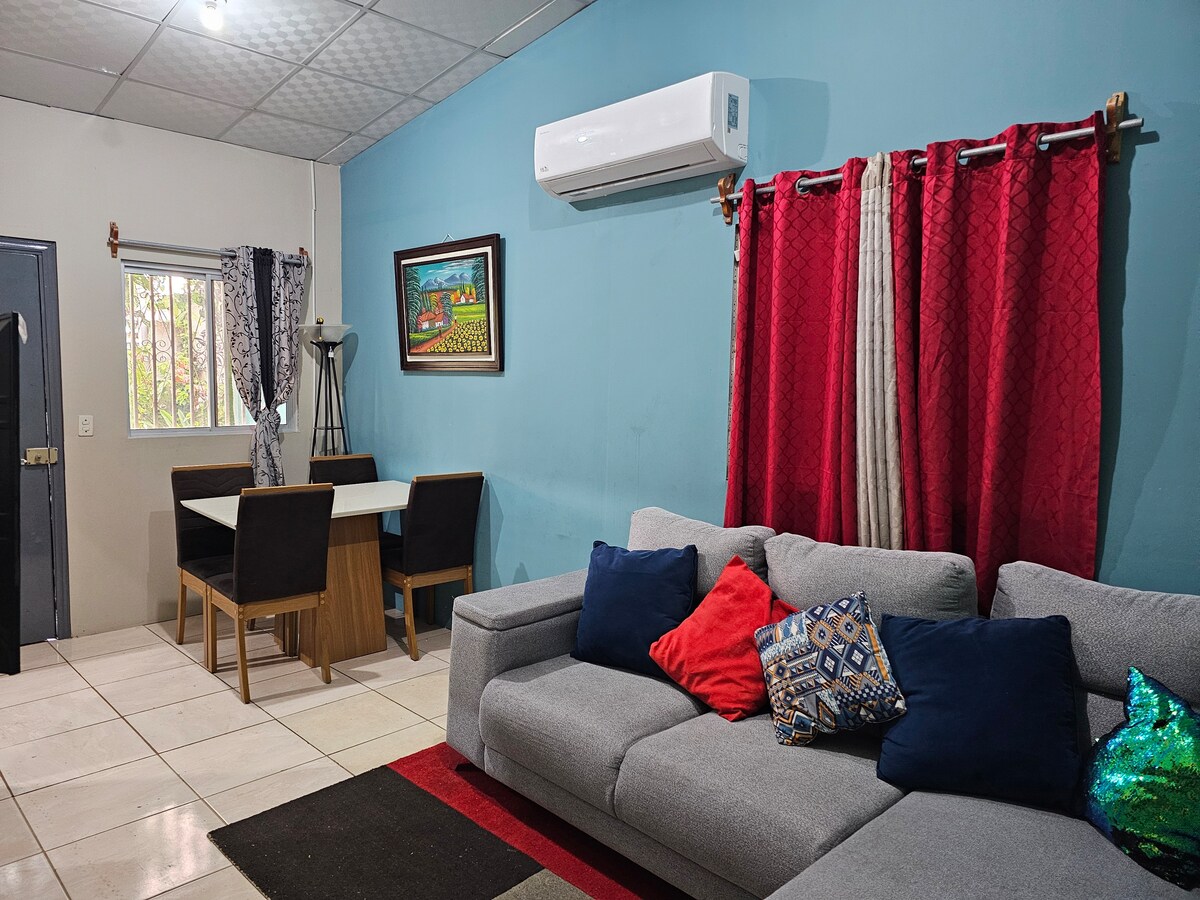 Maison élégante et confortable, 2 chambres m, 3 lits et 2 climatisation ! ! très sûr, meubles et lits de haute qualité, avec parking, wifi gratuit, Smart TV, NETFLIX ! ! situé dans le centre-ville, à 2 kilomètres du pont Choluteca, des supermarchés et de la restauration rapide à 1 kilomètre.