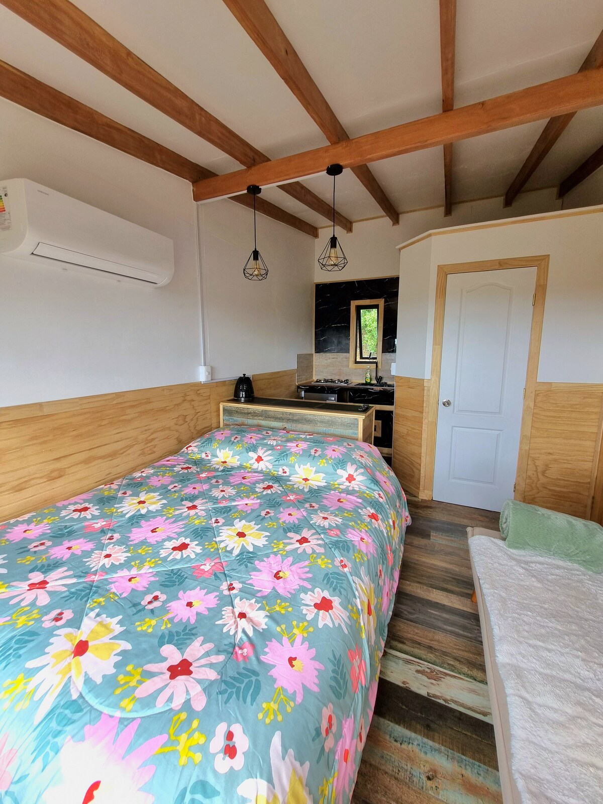Arriendo de cabaña monoambiente por día en Notuco/Chonchi en Chiloé🏡❤️ Completamente equipada con todo lo necesario para una buena estadía. - Contamos con aire acondicionado y agua caliente. - Ideal para parejas (o con 👶) y viajeros solitarios. - A 3 minutos del centro de Chonchi. - Estamos ubicados en un punto estratégico para visitar Castro, Queilen, Quellón, Cucao, Huillinco, Puqueldón, etc. 🦋 Los esperamos 😁