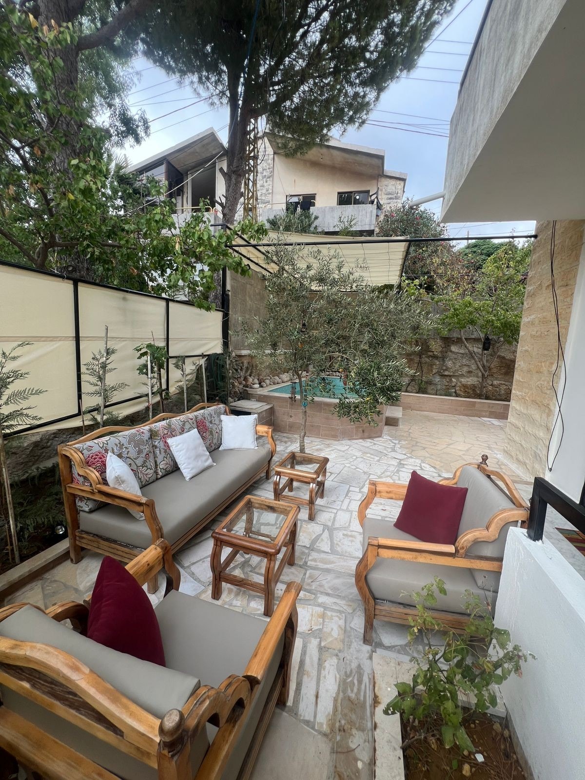 Bienvenue dans notre humble maison, un appartement entièrement meublé, bien au-dessus du brouhaha de la ville mais accessible à tous les essentiels. Situé dans une zone montagneuse verdoyante luxuriante avec des routes développées avec une belle vue sur la forêt environnante, parfaite pour la randonnée dans la nature. Profitez du calme à la maison, jouez au tennis, au football ou au basketball sur les courts communautaires, faites un pique-nique, détendez-vous au bord de la piscine ou conduisez jusqu'à Beyrouth pour une sortie entre amis ou en famille. Tous sont facilement accessibles.