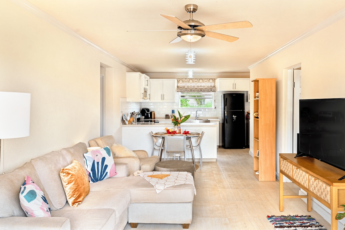 Nous vous invitons à vivre comme un Bajan dans ce logement de deux chambres situé au cœur d'une communauté animée. À deux minutes à pied de l'épicerie locale, du bureau du médecin, du pharmacien et du magasin de rhum « au fond de l'écart ». Faites une « promenade matinale » jusqu'à la très populaire Miami Beach pour profiter d'un « bain de mer » comme disent les habitants (15 minutes à pied). Ou restez à la maison, détendez-vous sur le patio arrière et profitez de la brise en sirotant votre café ou en dégustant des fruits de saison.