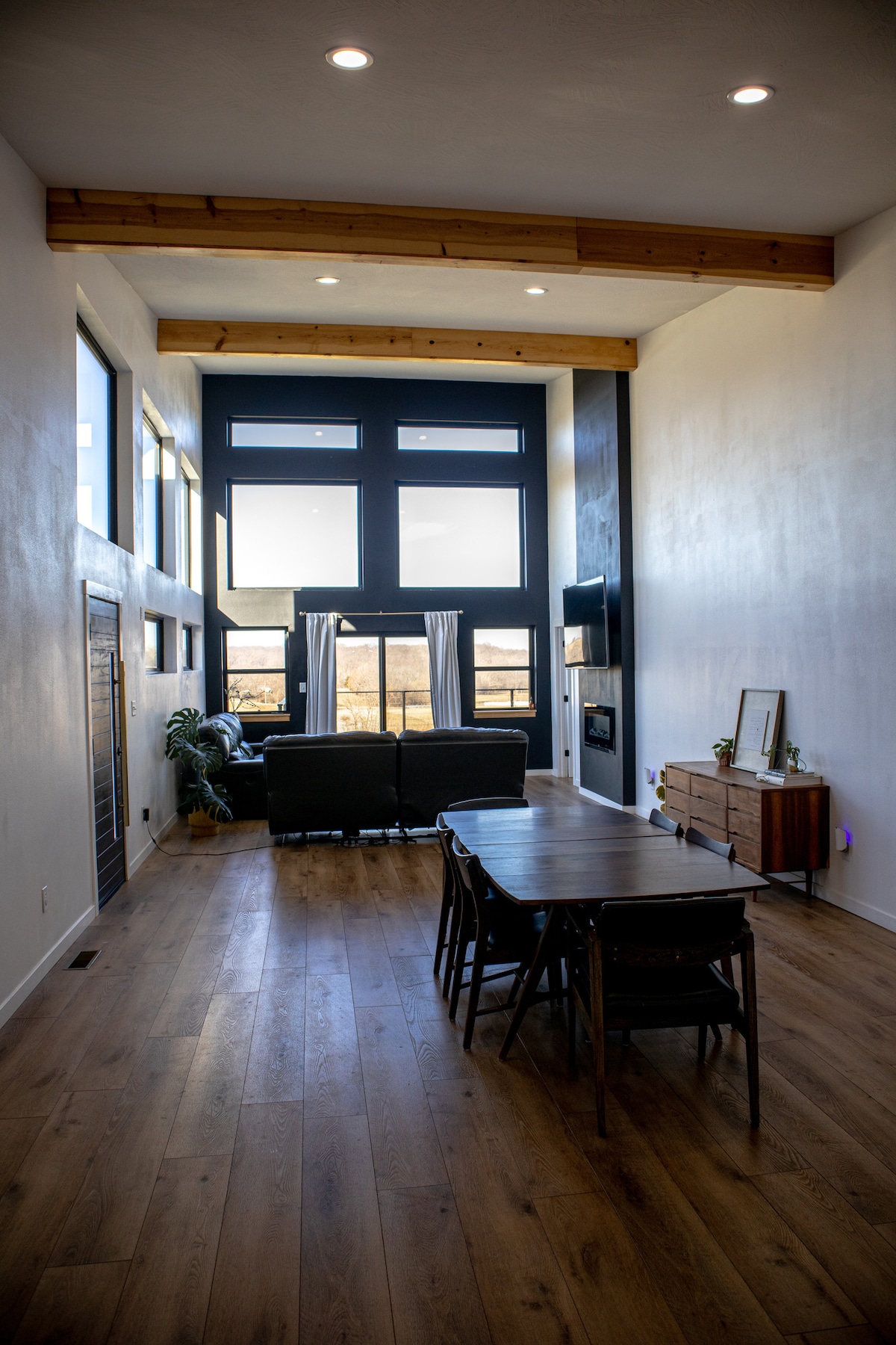 Décor rustique avec des touches haut de gamme. Plan d'étage ouvert, la cuisine est équipée de tous les éléments essentiels nécessaires pour cuisiner votre repas préféré. Espace repas sur l'îlot en granit ou dans la salle à manger. Chambre calme et confortable. Grande buanderie avec lave-linge et sèche-linge. Vous adorerez la salle de bain avec la douche surdimensionnée. Profitez des grillades sur la grande terrasse. Télévision à écran plat dans le séjour et la chambre. Foyer au gaz dans le séjour.