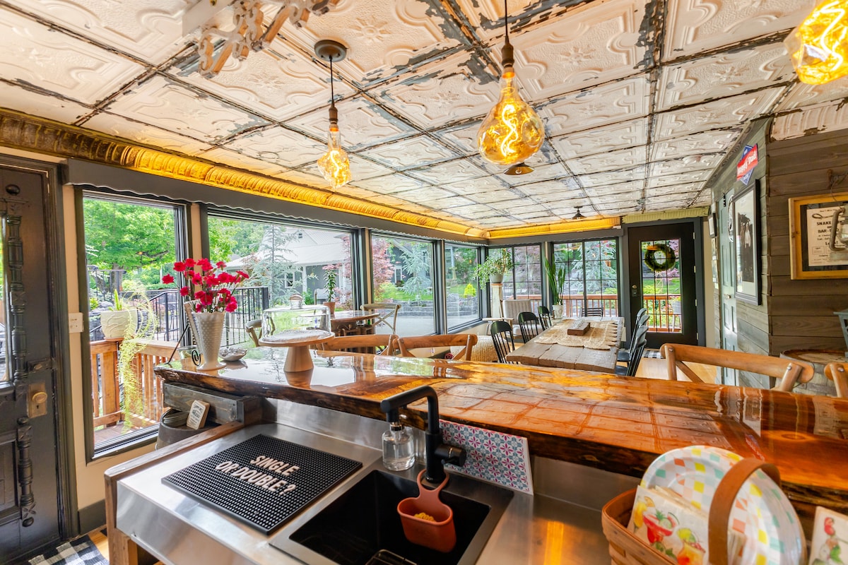 Veuillez lire attentivement : Faites du vélo jusqu'au parc de VTT de Two Rivers pour une promenade matinale ou détendez-vous dans un espace confortable après une soirée tardive à Greenhouse Two Rivers. Notre logement est parfaitement situé entre les deux ! Cet espace de retraite privé nouvellement construit est idéalement situé entre Springfield et Branson. Détendez-vous sur la terrasse spacieuse donnant sur les bois, réservez un cours de forge ou d'émaillage avec nous, ou utilisez notre logement comme base pendant que vous explorez Springfield ou Branson.