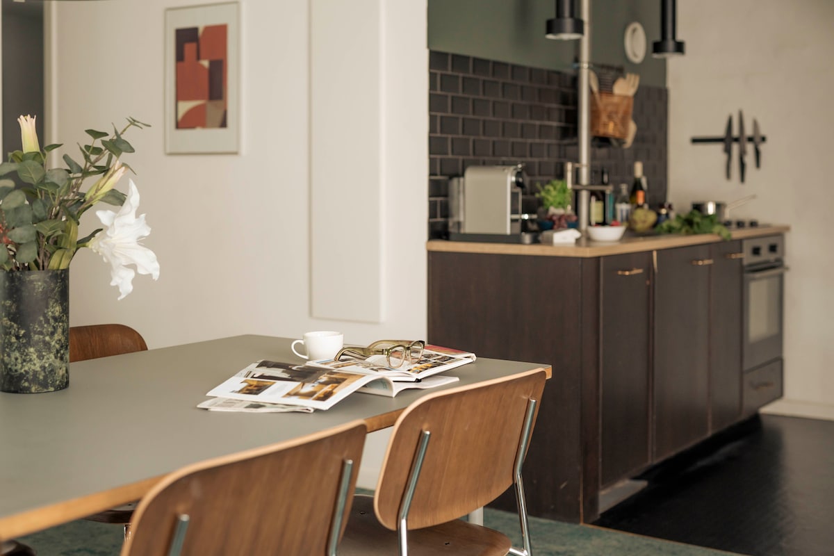 Nous sommes Aperon, un hôtel d'appartements situé dans une rue piétonne du centre de Copenhague, dans un bâtiment datant de 1875. Les appartements sont conçus avec soin, combinant un look contemporain avec des aménagements pratiques. Tous les logements ont accès à une cour et une terrasse communes avec vue sur la Tour Ronde. Avec une arrivée autonome facile et des appartements entièrement équipés, nous offrons la facilité d'un logement privé, avec un accès à nos services hôteliers.