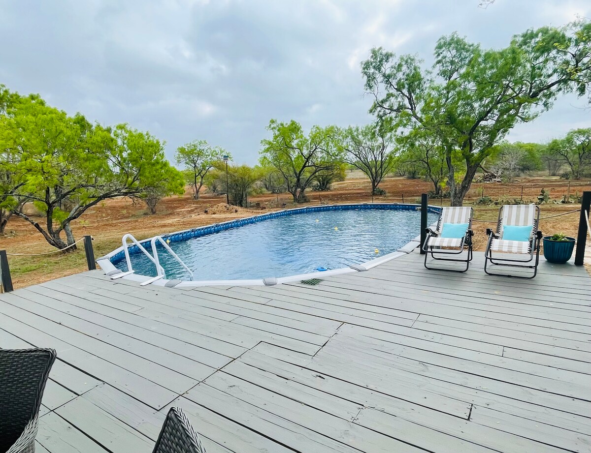 Cute, cozy home in the peaceful country. Private deck and large pool! (33 acre ranch) Only 5 miles to shopping. This is a perfect romantic getaway or peaceful getaway from the city. House is fully stocked for all your needs. Full laundry- 3 people MAX. Automated gated entry for security. Outdoor lounge and dining area. Beautiful sunrises and sunsets. Walk out on the deck and right into the pool. Poteet Strawberry festival 5 miles away. Only 30 miles to San Antonio Riverwalk, Sea world, Fiesta