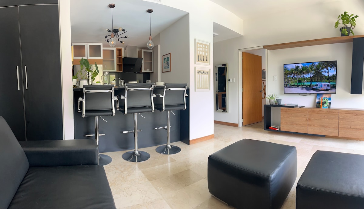 Confortable appartement de 60 m2 situé à l'intérieur du CCCT. Très bien équipé, avec vue sur l'Avila et un excellent service Internet, lit neuf. Accès aux courts de tennis et à la piscine. Si vous ne voyez pas de disponibilité aux dates que vous recherchez, demandez ! Nous avons d'autres appartements dans le même bâtiment. Sûr, privé et fiable. Nous incluons le stationnement à partir de 2 jours de séjour. Commerces, épiceries, pharmacies, cliniques et restaurants accessibles en descendant simplement dans l'ascenseur.