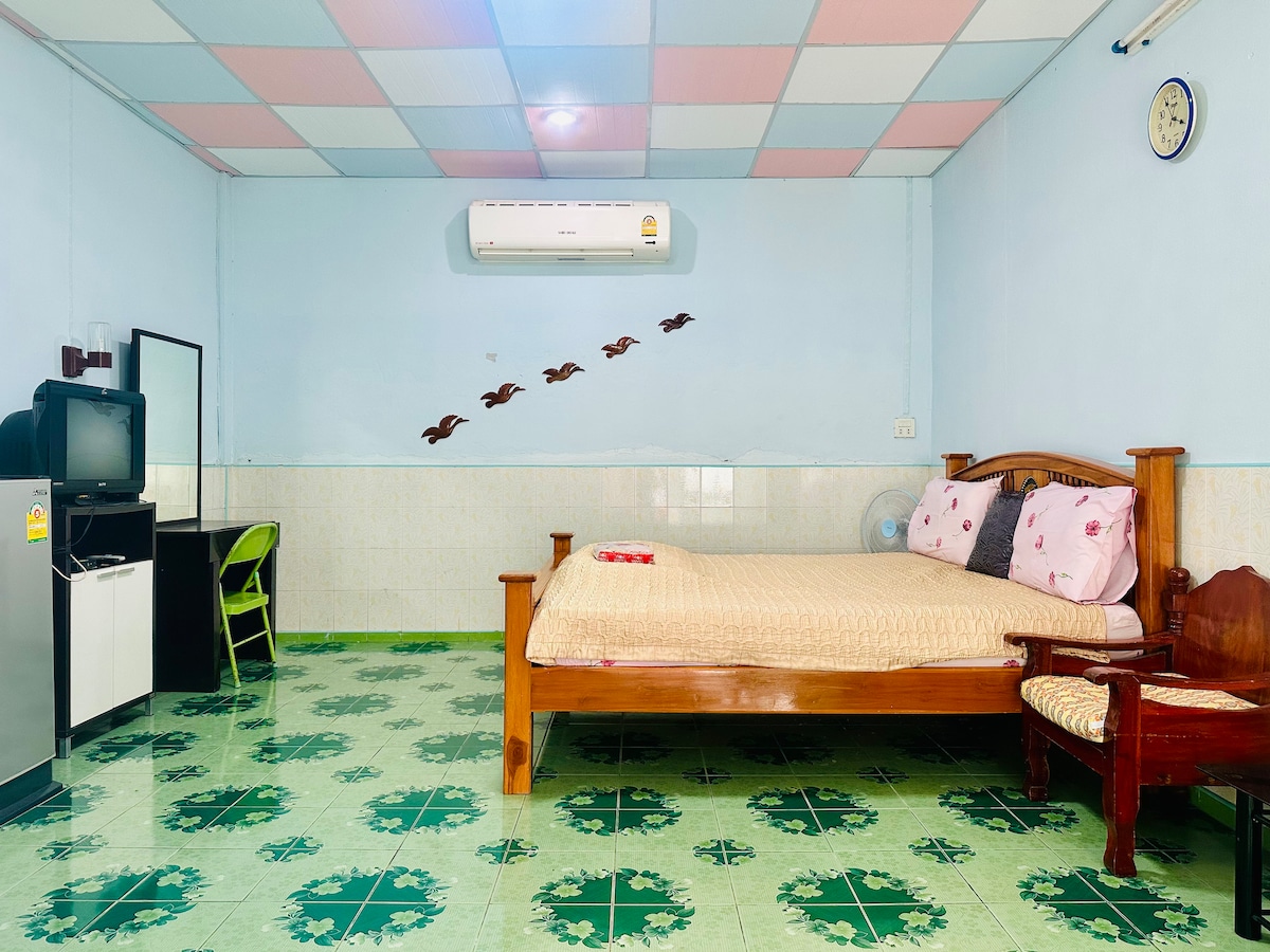 Notre hôtel ne dispose que de 4 chambres au total. Il s'agit de la chambre avec vue sur la mer située au dernier étage de l'immeuble. Cette chambre peut accueillir jusqu'à 4 personnes. Il y a 1 lit King Size, et nous pouvons mettre 2 matelas supplémentaires sur le sol à côté du lit. Le matelas supplémentaire coûte 400 THB/ensemble. Le petit-déjeuner n'est pas inclus. Le petit déjeuner coûte 250 THB/ensemble.