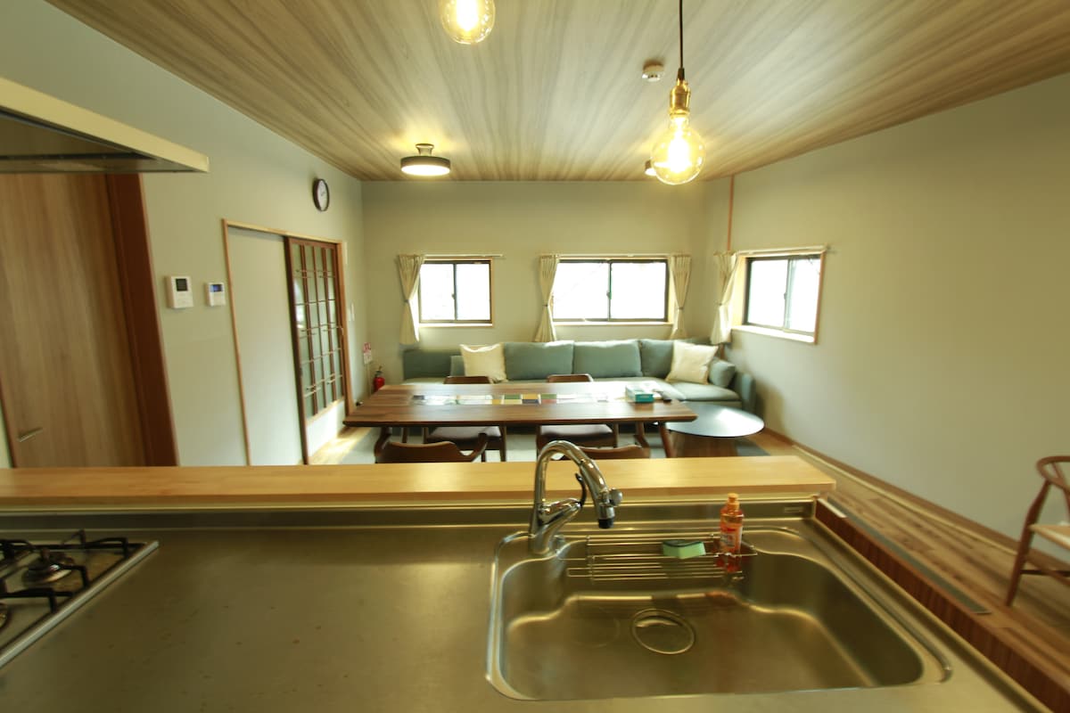 Ancienne maison de 160 ans rénovée en 2023. Avec une superficie totale de 700 tsubo (2300 m²) et un bâtiment de 170 m², il est très spacieux. Bien qu'il soit situé à 8 minutes en voiture du château de Kumamoto, c'est un chalet où vous pourrez vous détendre loin de l'agitation. Le jardin regorge d'arbres et de fleurs, dont un grand noyer qui existe depuis plus de 160 ans, des pins noirs, des érables, des bambouseraies, etc., et vous pourrez profiter des arbres et des fleurs au fil des saisons. L'hôte vit dans le bâtiment adjacent, donc vous pouvez passer un moment en toute tranquillité. Prenez une grande respiration et rafraîchissez-vous du fond du cœur. Points ●à noter · Il y a beaucoup de moustiques et d'insectes dans le jardin où poussent les arbres. Ceux qui n'aiment pas les insectes peuvent avoir du mal à en profiter. Cette propriété est située dans un quartier résidentiel très calme. Après 20 heures, veuillez éviter les conversations bruyantes dans le jardin ou sur la terrasse.