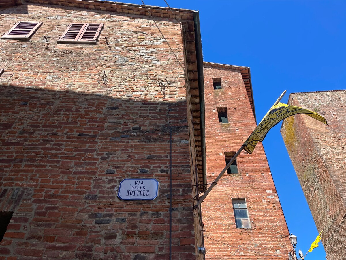 L’appartement est vraiment spécial car c’est ici que la célèbre fiction « Carabinieri » a été tournée. Il est situé juste sur la petite place de la Caserne, au cœur du centre historique, en face du siège de l’un des tiers du Palio d’août, le Tiers Casalino, à deux pas du célèbre Vicolo Baciadonne, le plus étroit d’Italie et que lorsque vous sortez, en serrant un peu les épaules, vous vous trouvez devant un panorama à couper le souffle ! Parking gratuit à 100 mètres, dont l’un avec colonne de recharge de voiture.