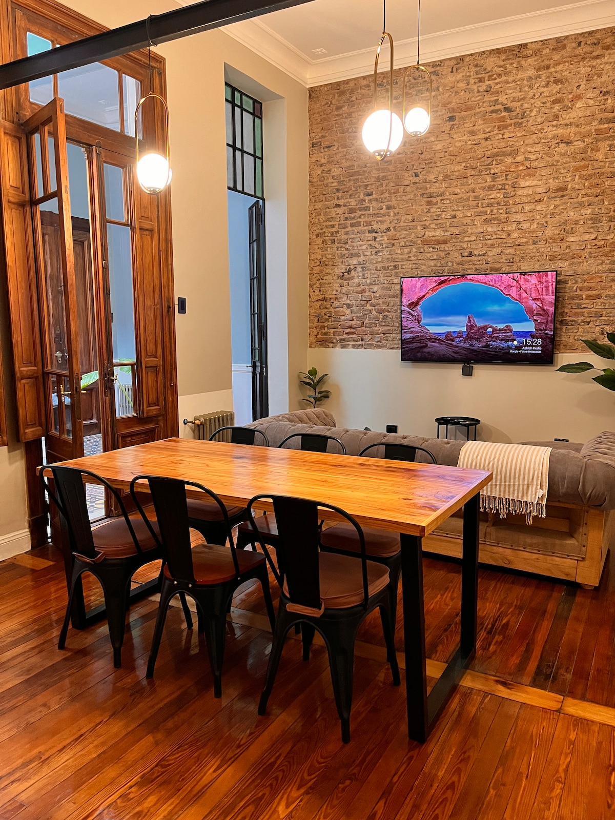 Cet appartement de 55 m² allie style et fonctionnalité, avec une décoration éclectique et un design moderne. Il comprend un lit double, un lit de jour (canapé ou lit d'appoint), une table à manger design, une cuisine avec bar, une salle de bain complète avec baignoire, un bureau à domicile et un balcon. Situé à La Editorial, une ancienne imprimerie rénovée récompensée pour son design. Idéalement situé près de Puerto Madero, La Boca et le centre-ville, avec un excellent accès aux transports, aux bars et aux spots de tango. Wifi 600 Mb, réception 24h/24 et 7j/7, piscine sur le toit, espace barbecue et buanderie.