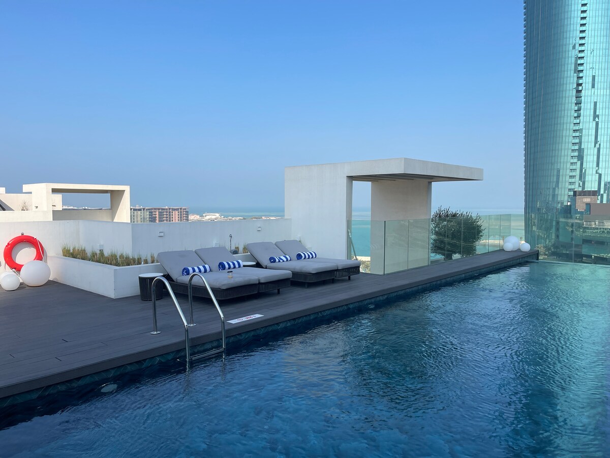 Profitez d'un logement élégant et central. 1 chambre avec salon et 1,5 salle de bain dans le quartier le plus luxueux de Bahreïn, pour 4 personnes, le canapé du salon peut être converti en lit. Salle de sport, piscine, parking privé avec vue imprenable sur la mer.