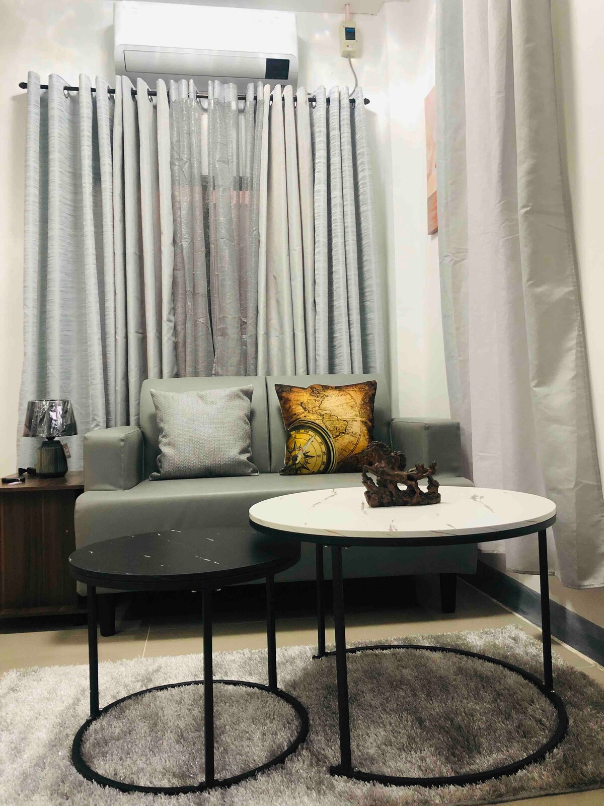 Appartement entièrement meublé 🛏️2 chambres avec climatisation 🛏️ 1 lit d'appoint pliable Télévision 📺connectée à écran plat Wi-Fi 📶 gratuit 📌 Canapé, banc et salle à manger 🛁2 salles de bains avec douche 📌Avec parking Le 📌logement est fermé et clôturé. 📌Réfrigérateur 🍴Chauffage, ustensiles, cuiseur à riz et ustensiles de cuisine 1 gallon d'eau purifiée📌 gratuit avec distributeur 📌 Ventilateur sur pied À 🚘5 minutes en voiture de Bayugan City Proper (Rotunda, Jollibee, Gaisano, etc.) 🚩 Situé sur 6th St. Lot 1-3 Marrea Homes, Cagbas, Bayugan City