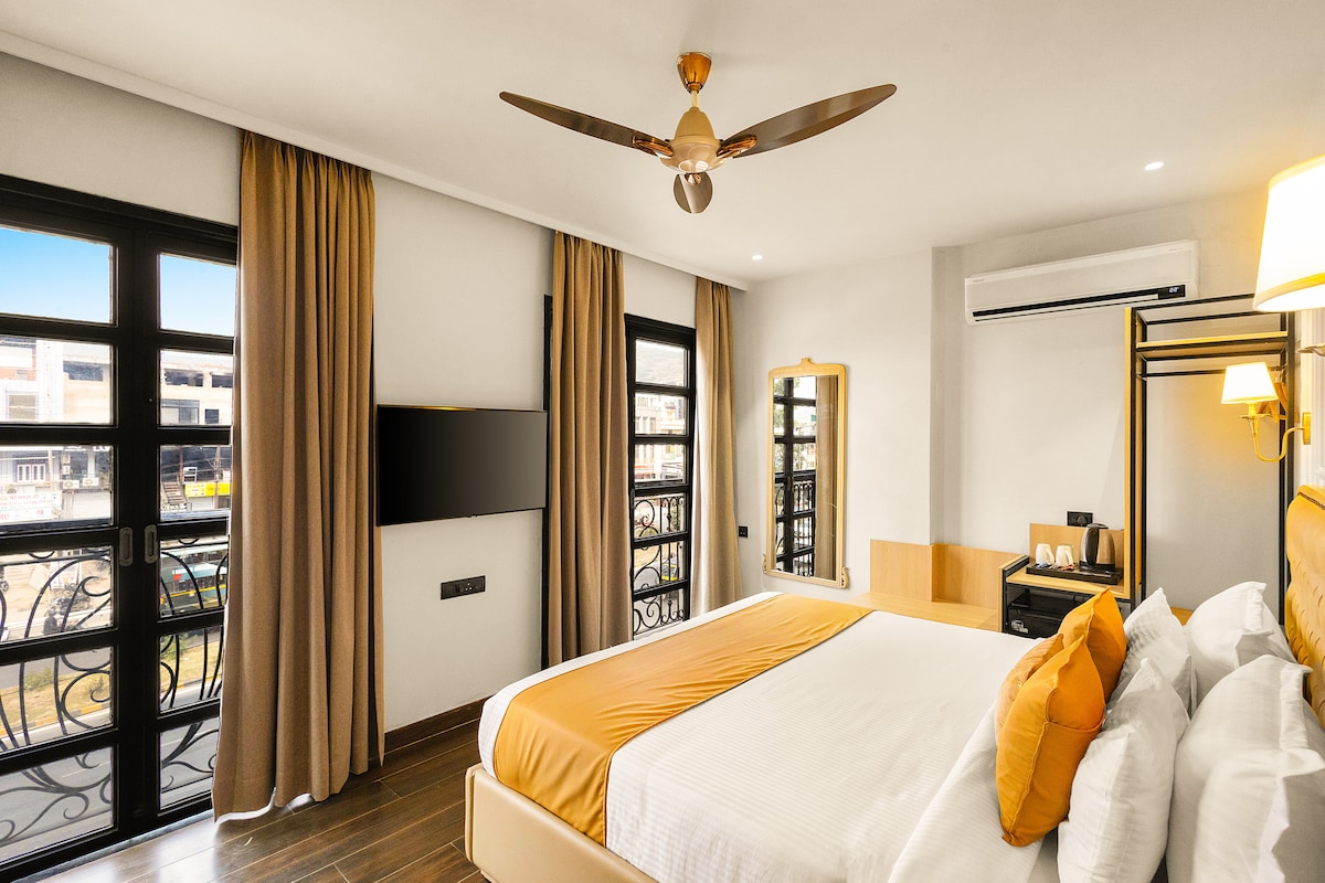 ◆ Parfaitement situé sur la route principale près de l'aéroport, cet hôtel offre luxe et commodité. ◆ La chambre dispose d'un lit king size, de la climatisation, d'une télévision 32 pouces, d'un poste de travail et d'un balcon privé avec vue panoramique et d'une salle de bain moderne qui dispose d'une douche à l'italienne vitrée. ◆ Les voyageurs bénéficient d'un grand parking attenant et d'un accès facile au City Palace (9,7 km) et à d'autres attractions populaires d'Udaipur.◆ Profitez d'un dîner élégant dans le restaurant et d'un accueil sophistiqué dans le salon de réception.
