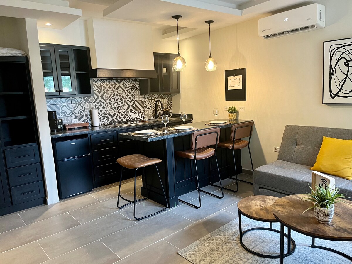 Bienvenue à Serena Suites, une suite privée et récemment rénovée, idéale pour se reposer ou travailler. Il dispose d'un lit king size, d'un minisplit froid/chaud, d'une cuisine équipée, d'un canapé-lit, d'un bureau, d'un fauteuil inclinable, d'une connexion Wi-Fi rapide, d'une télévision, d'une salle de bain privée, d'un sèche-cheveux et de prises USB. Parking privé, zone sécurisée avec veilleur, quartier résidentiel. Café gratuit, proche du pont international, à 10 minutes du centre et à proximité du parc industriel. Oxxos et supermarchés à quelques minutes.
