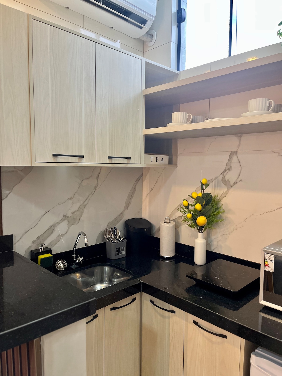 Bienvenue pour une expérience unique au meilleur point de la ville. 🛏️ Chambre : lit de haute qualité, éclairage confortable et design moderne. 🛋️ Salon : Canapé confortable, Smart TV avec accès aux plateformes de streaming et aux grandes fenêtres qui remplissent l'espace de lumière naturelle. 🍽️ Cuisine entièrement équipée pour cuisiner comme à la maison. 🛁 Salle de bain complète : Douche avec eau chaude, serviettes douces et articles de toilette essentiels.
